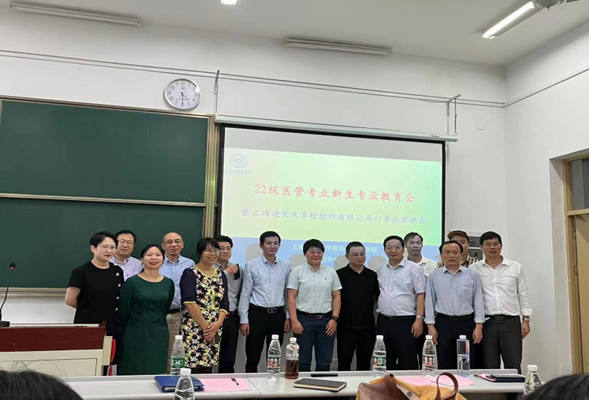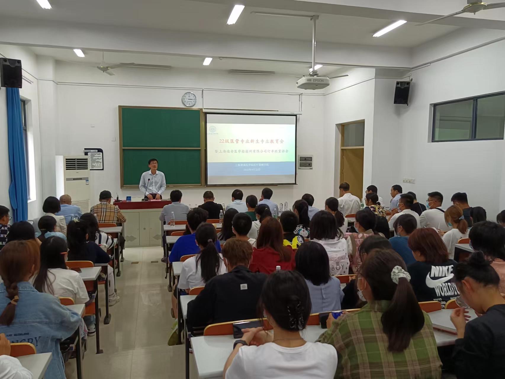 9月22日下午,22级医疗产品管理专业新生入学教学宣讲会与校园宣讲会在新南苑北楼103室隆重举行。医疗器械学院党总支书记李晓欧教授、上海迪安医学检验所有限公司的吴香妮(副总)、人力资源部经理李强与廖让康老师、医疗产品管理教研室主任蒋海洪副教授、医管教研室全体教师及辅导员李茜老师、郭宇嘉老师出席了会议。