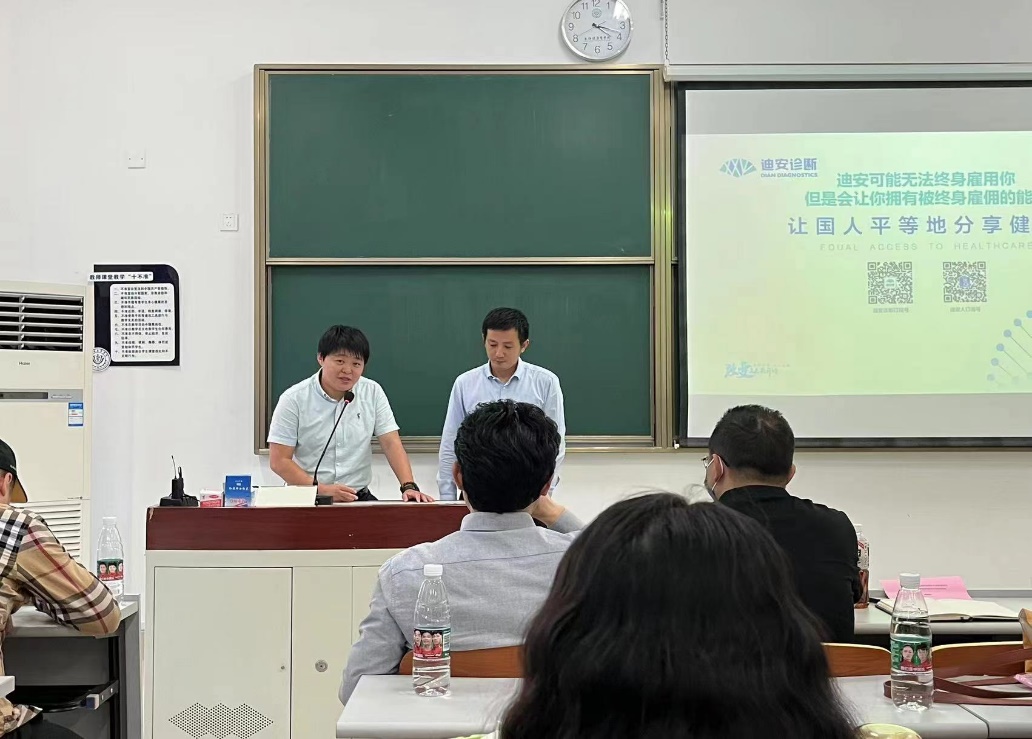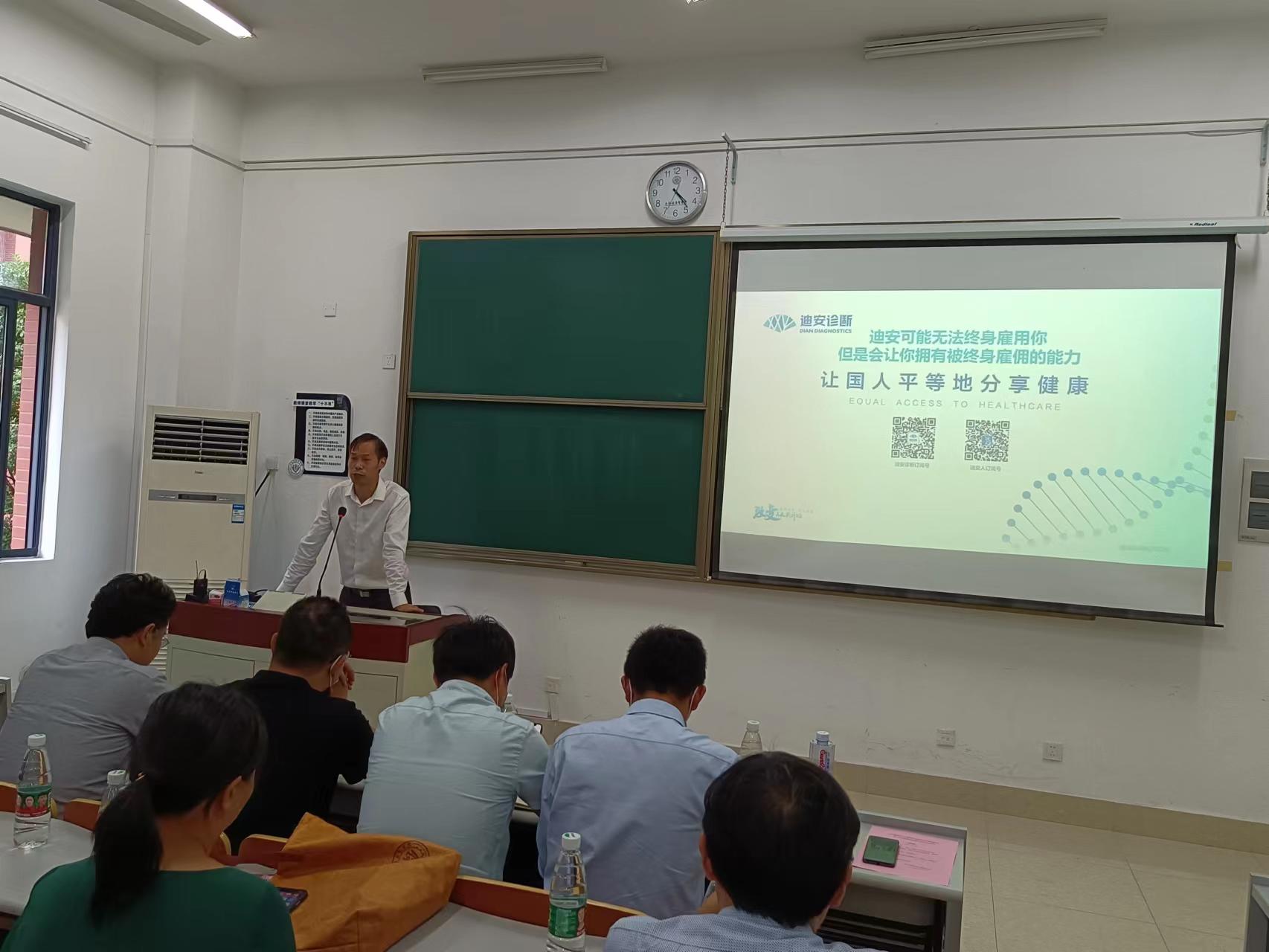 上海迪安医学检验所有限公司人力资源部经理李强和吴香妮(副总)对公司情况、人才发展、企业竹文化、福利待遇等方面进行了宣讲,并与老师同学们展开互动,将积极落实订单班的具体细节。
