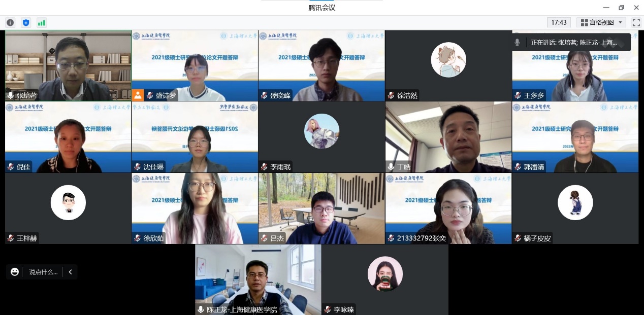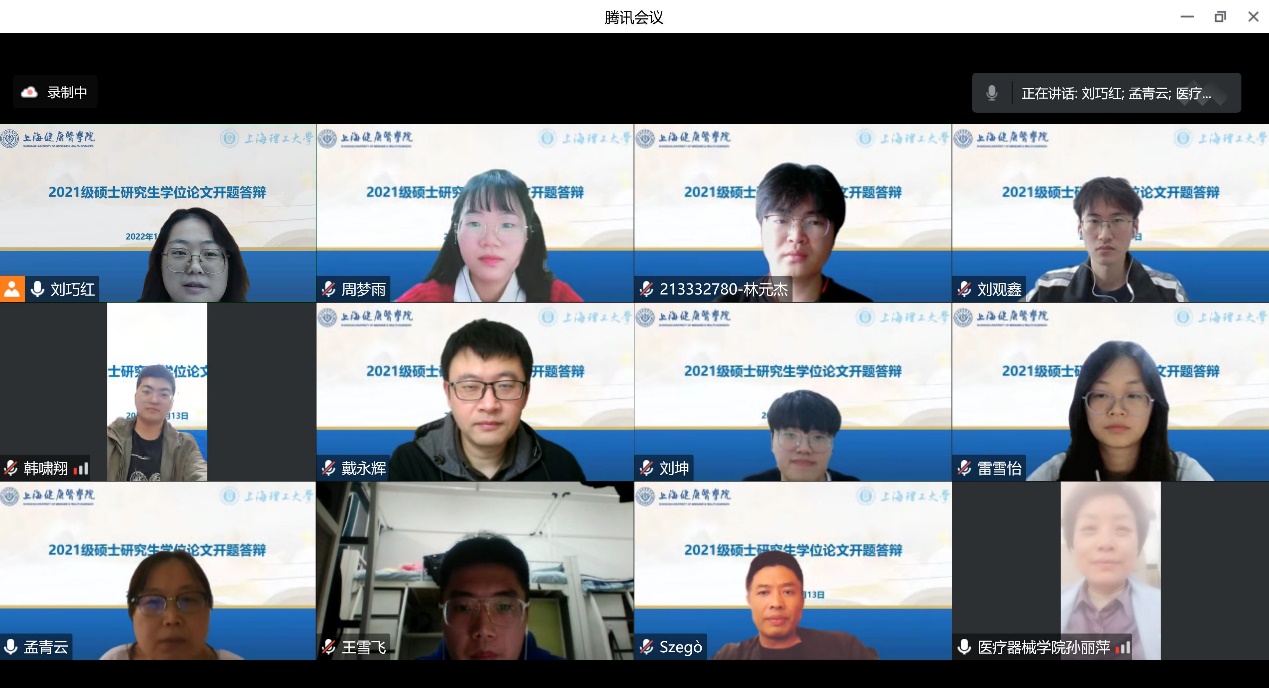 10月13日,医疗器械学院举办2021级上海理工大学联合培养硕士研究生开题答辩会。开题作为研究生培养的关键环节,对研究生日后的学习、科研训练与学位论文撰写起着至关重要的作用。本次报告会采用线上模式,共分为3组,12位研究生导师担任评委,同时邀请上海市精神卫生中心苏杭副研究员、上海市医疗器械检验研究院王伟高级工程师、上海对外经贸大学戴永辉副教授,其他年级硕士研究生观摩学习。