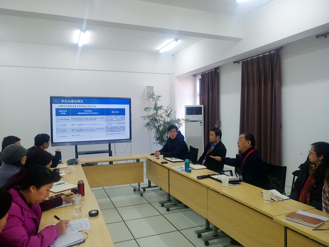 国家学位授权点基本条件介绍了学院学位点建设情况,然后又从验收指标和责任落实方面汇报了穿戴式医疗技术与器械工程研究中心建设情况。