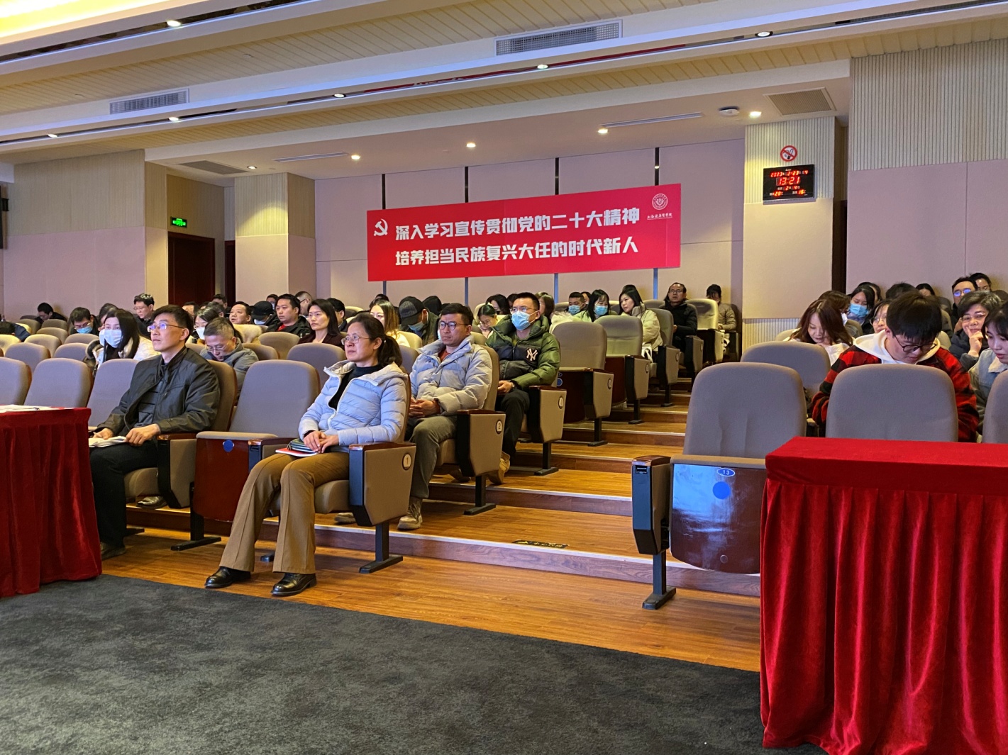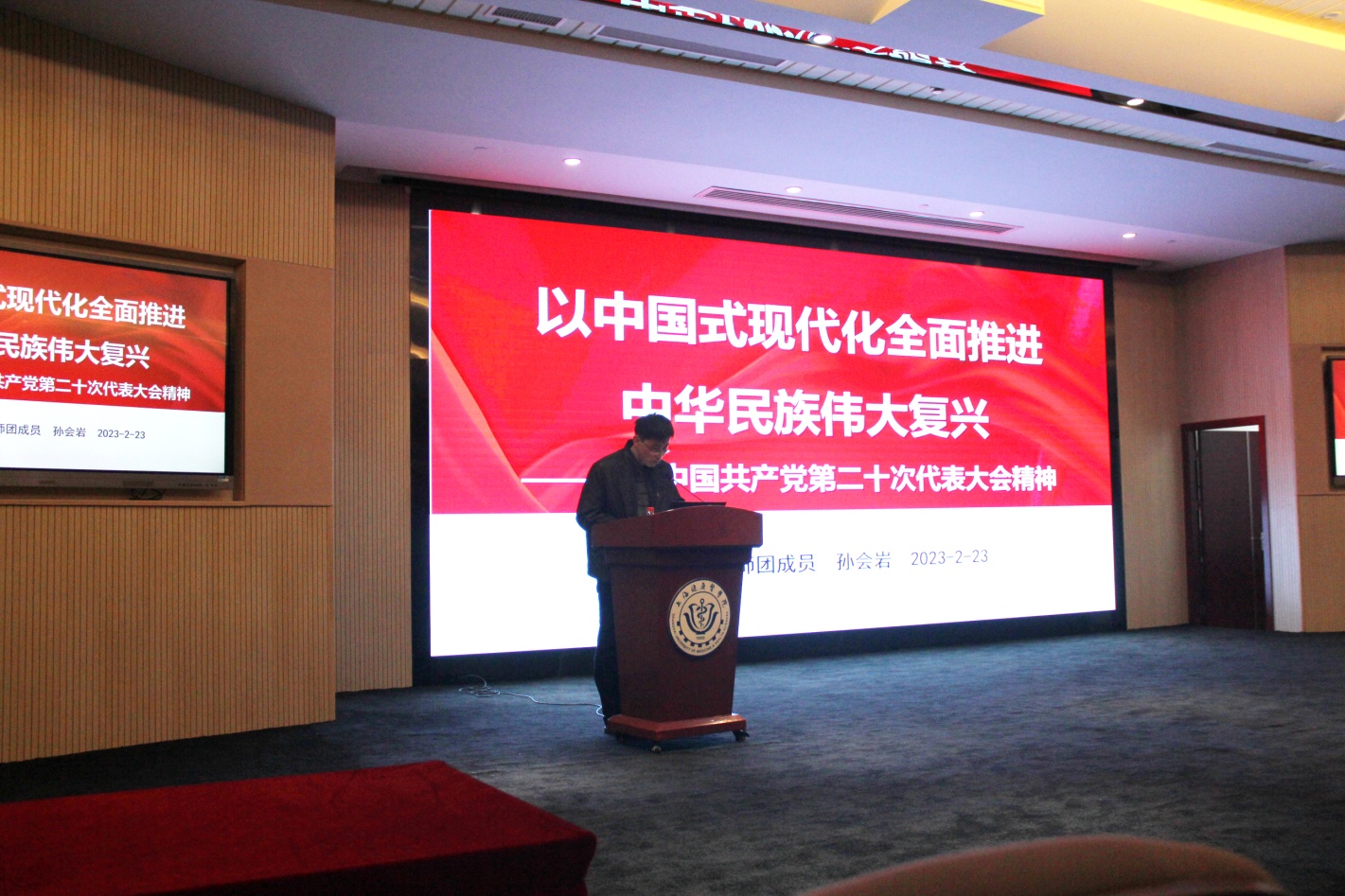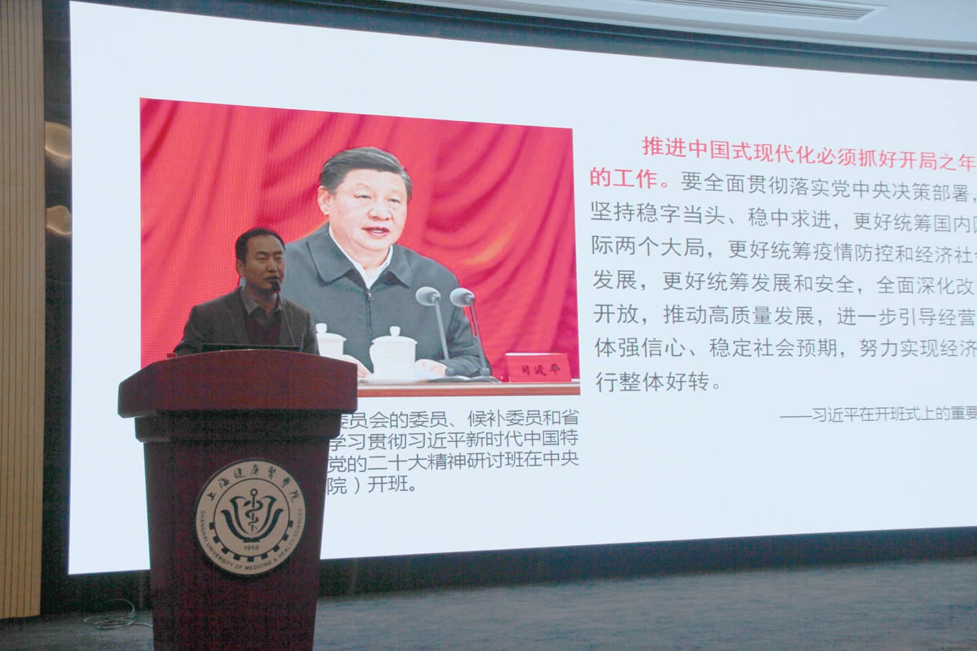 2月23日下午,医疗器械学院中心组(扩大)学习暨全院教职工政治学习大会在北苑1号楼一楼200人报告厅举行,共青团中央、上海市青年讲师团成员孙会岩副教授应邀作“以中国式现代化全面推进中华民族伟大复兴——学习中国共产党第二十次全国代表大会精神”讲座,会议由学院党总支李晓欧书记主持,学院全体教师、部分学生党员和校行政第一联合直属党支部全部党员参加了此次学习。