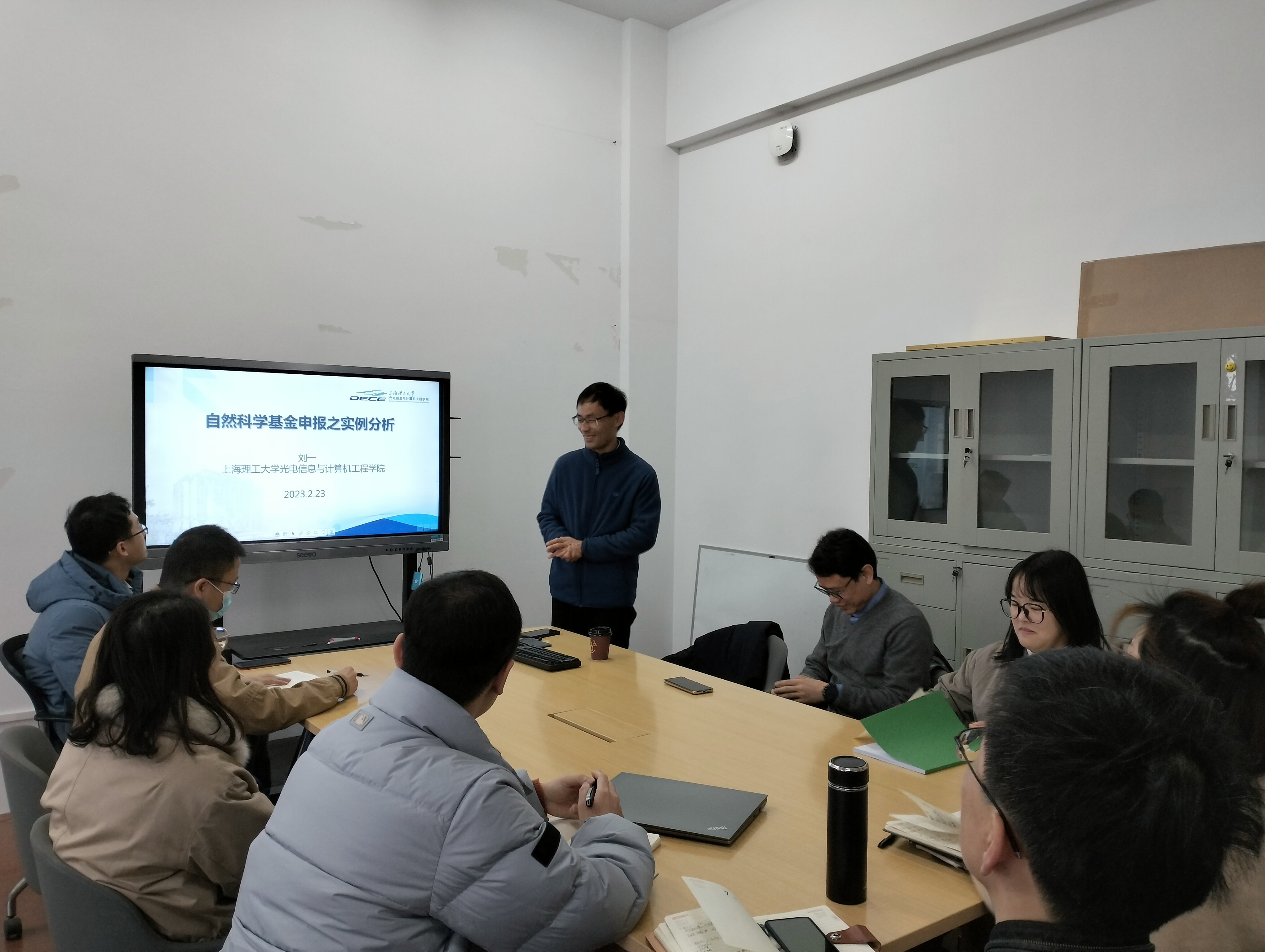 2月23日上午,医疗器械学院举办2023年国家自然科学基金项目申报指导交流会,邀请上海理工大学光电学院刘一副院长作报告。李晓欧书记、杨晖院长和10余位骨干教师和青年教师参加会议。