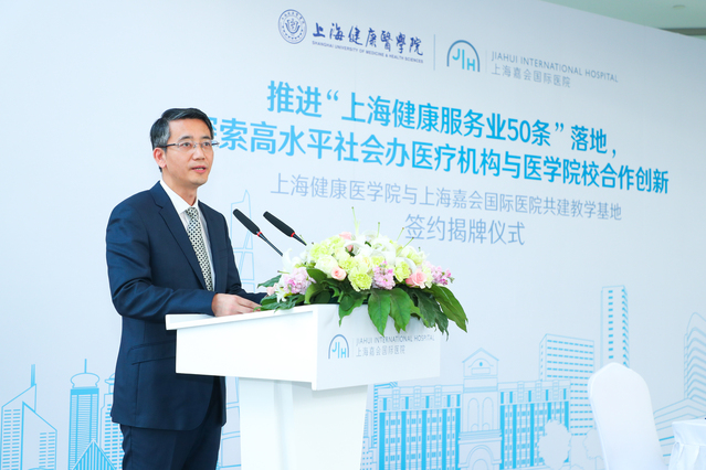 上海“健康服务业50条”落地又有新进展,依照“健康服务业50条”中的“支持高水平社会办医疗机构成为医学院教学基地,并作为住院医师、专科医师规范化培训基地”等突破性政策指引,3月4日,我校和上海嘉会国际医院正式签约,宣布共同开展教学基地建设。这是继同济大学医学院与上海天佑医院、上海蓝十字脑科医院深入合作后,本市又一社会办医疗机构与医学院开展共建。上海市卫生健康委员会主任邬惊雷、徐汇区副区长晏波、区卫生计生委和相关医疗卫生单位主要负责人、我校校长黄钢、党委副书记于莹、副校长许铁峰、相关职能部门和二级学院负责人、附属医院代表、上海嘉会国际医院首席执行官葛丰、首席运营官Mary Wan、各科室相关负责人共同见证。我校党委副书记于莹和上海嘉会国际医院首席运营官Mary Wan代表双方签约。