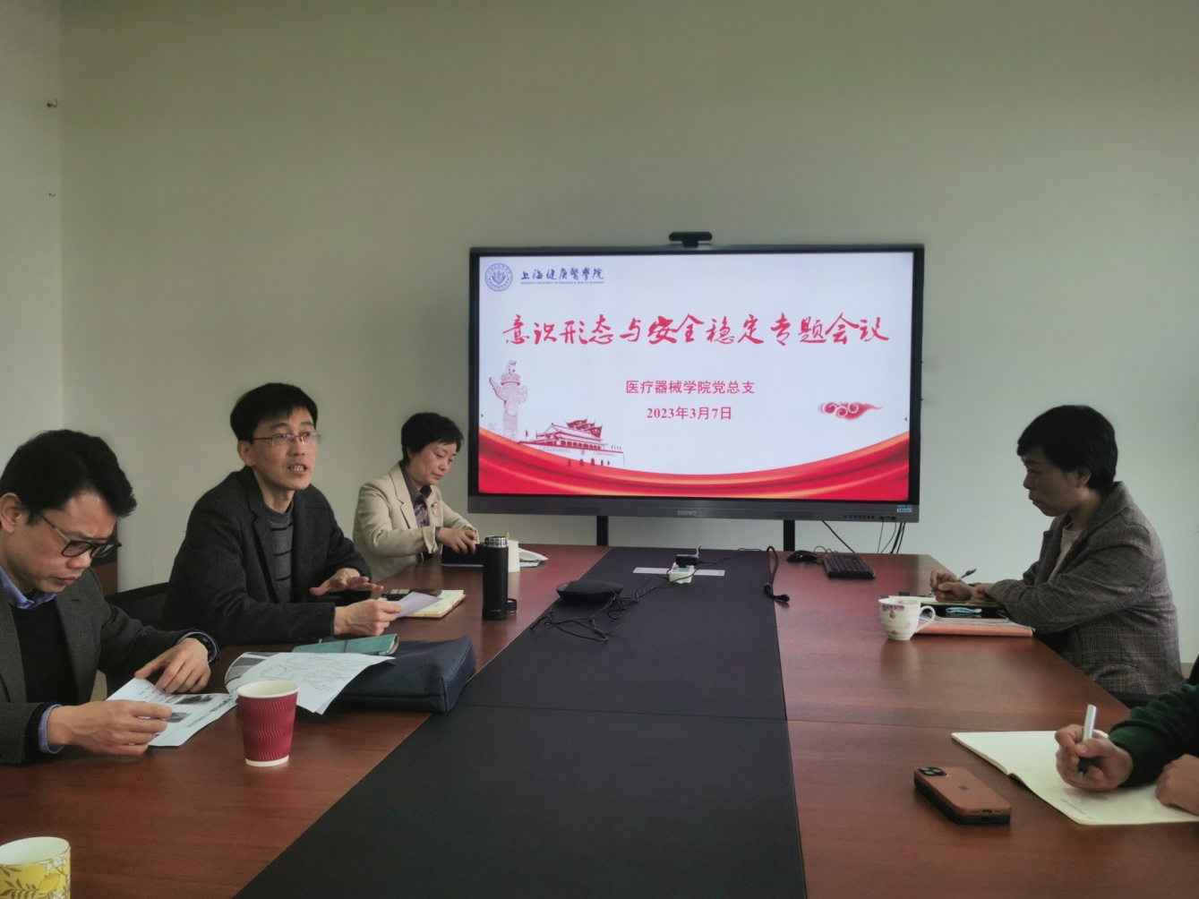 3月7日上午,医疗器械学院党总支在新南苑18号楼506室召开意识形态与安全稳定专题会议,学院党总支委员、工会主席和科级干部参加了会议,学院党总支书记李晓欧主持。