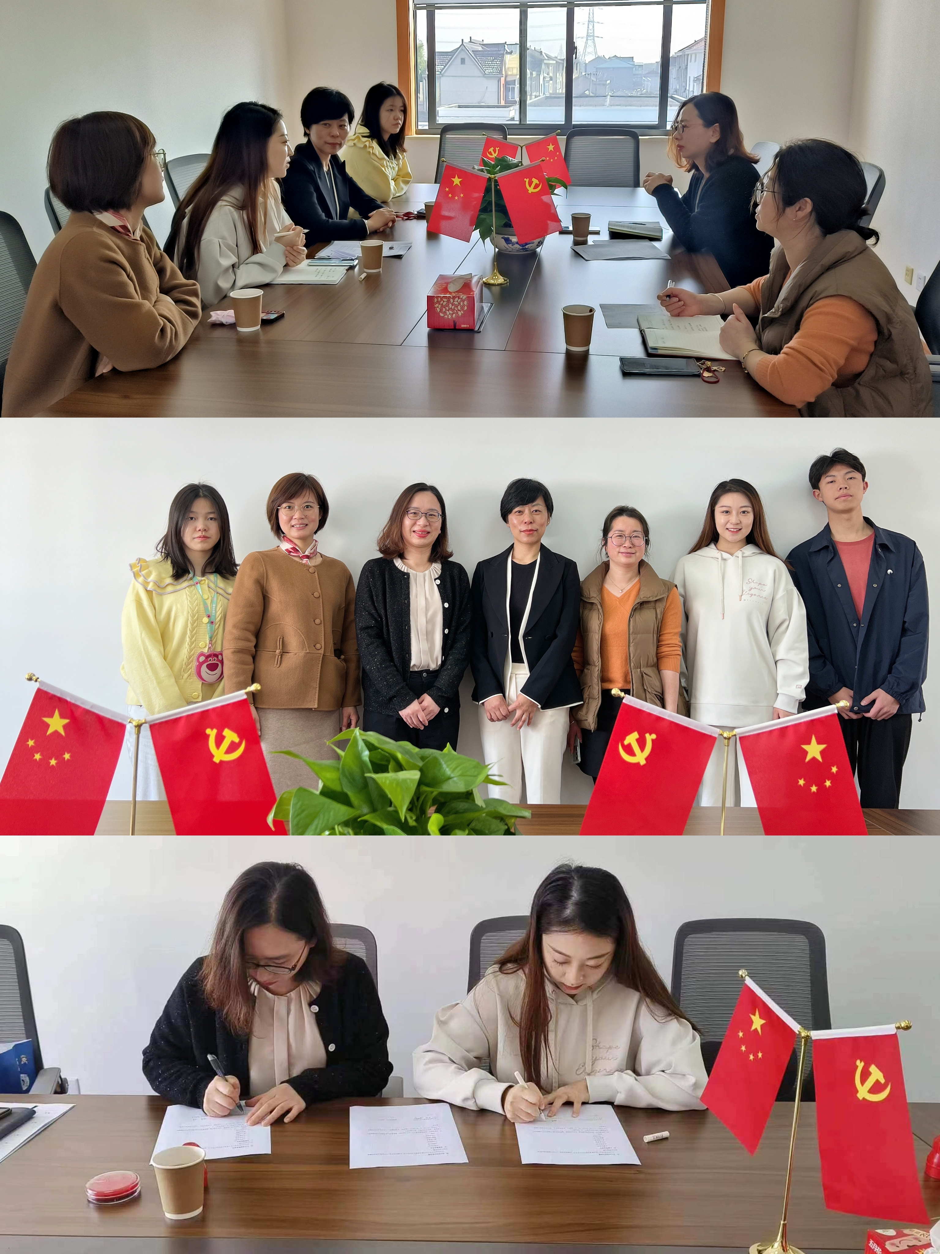 杨美老师介绍了医疗器械学院学生工作的基本情况,刘一丹老师介绍了学院志愿服务工作开展的情况,双方对于志愿工作服务与社会实践活动等进行了深入探讨并顺利签署《上海健康医学院志愿者实践基地签约书》。