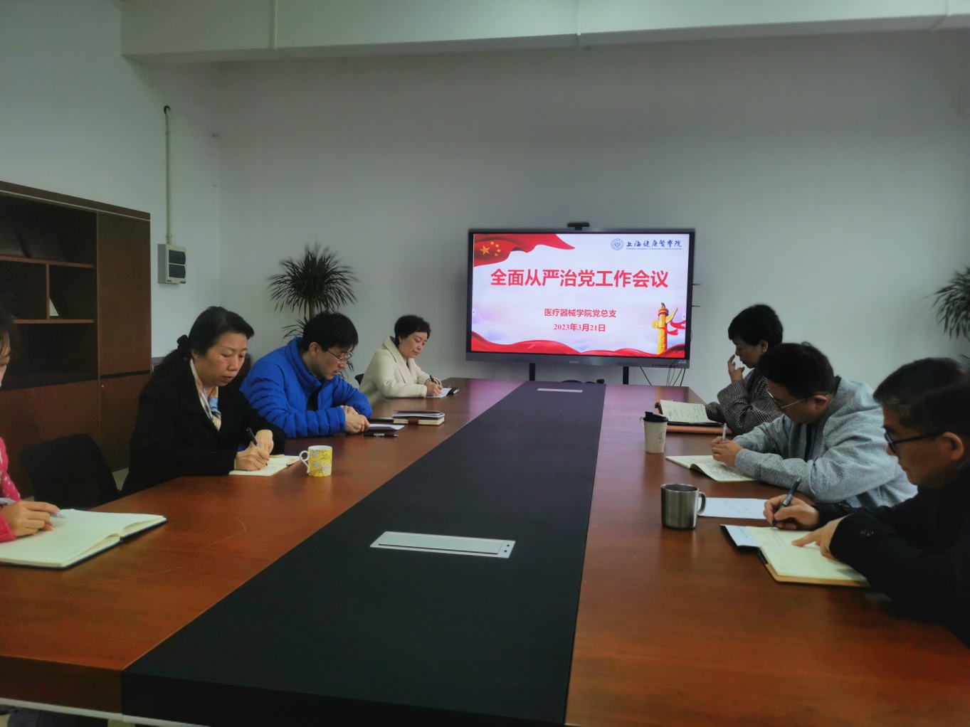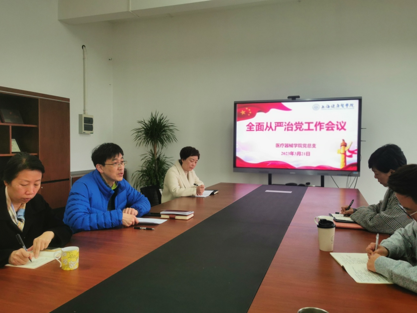 3月21日上午,医疗器械学院党总支在新南苑18号楼506室召开会议传达学习学校2023年全面从严治党工作会议精神,学院党政班子成员参会,会议由党总支书记李晓欧主持。