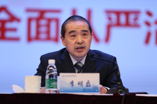 党委副书记、纪委书记李明磊从纪委履行全面从严治党监督责任的角度作题为《忠实履行监督执纪问责主责主业 推进全面从严治党不断深入》的工作报告。首先他从强化监督执纪问责主责主业和协助校党委推进全面从严治党两大方面回顾了2018年纪委的重点工作。其次他从六个方面对落实2019年全面从严治党监督责任主要工作进行了部署:一是深入学习贯彻习近平新时代中国特色社会主义思想和党的十九大以来的精神要求;二是认真落实市委巡视反馈意见整改工作;三是深化监督首责;四是协助党委推进全面从严治党;五是严格规范开展问题线索处置和执纪审查工作;六是持续加强纪检监察队伍建设。同时,李明磊将纪检监察部门开展问题线索处置的主要程序进行了详细的介绍和说明,并就近期发生在我们身边的案例开展了警示教育。李明磊指出:全体党员,特别是党员领导干部,一定要加强党性锻炼,筑牢思想防线,持之以恒用习近平新时代中国特色社会主义思想武装自己,要在党委的领导下,以巡视整改为契机,扎扎实实地推进全面从严治党、党风廉政建设和反腐败斗争,为学校各项事业的健康发展而努力奋斗!