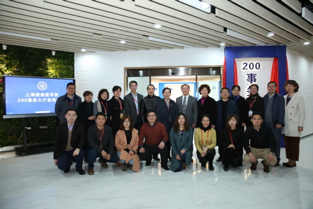 郑沈芳与入驻部门代表党校办主任杜峥、教师代表医疗器械学院张培茗副教授,在大家的见证下共同为200事务大厅揭幕,标志着大厅正式运行启用。