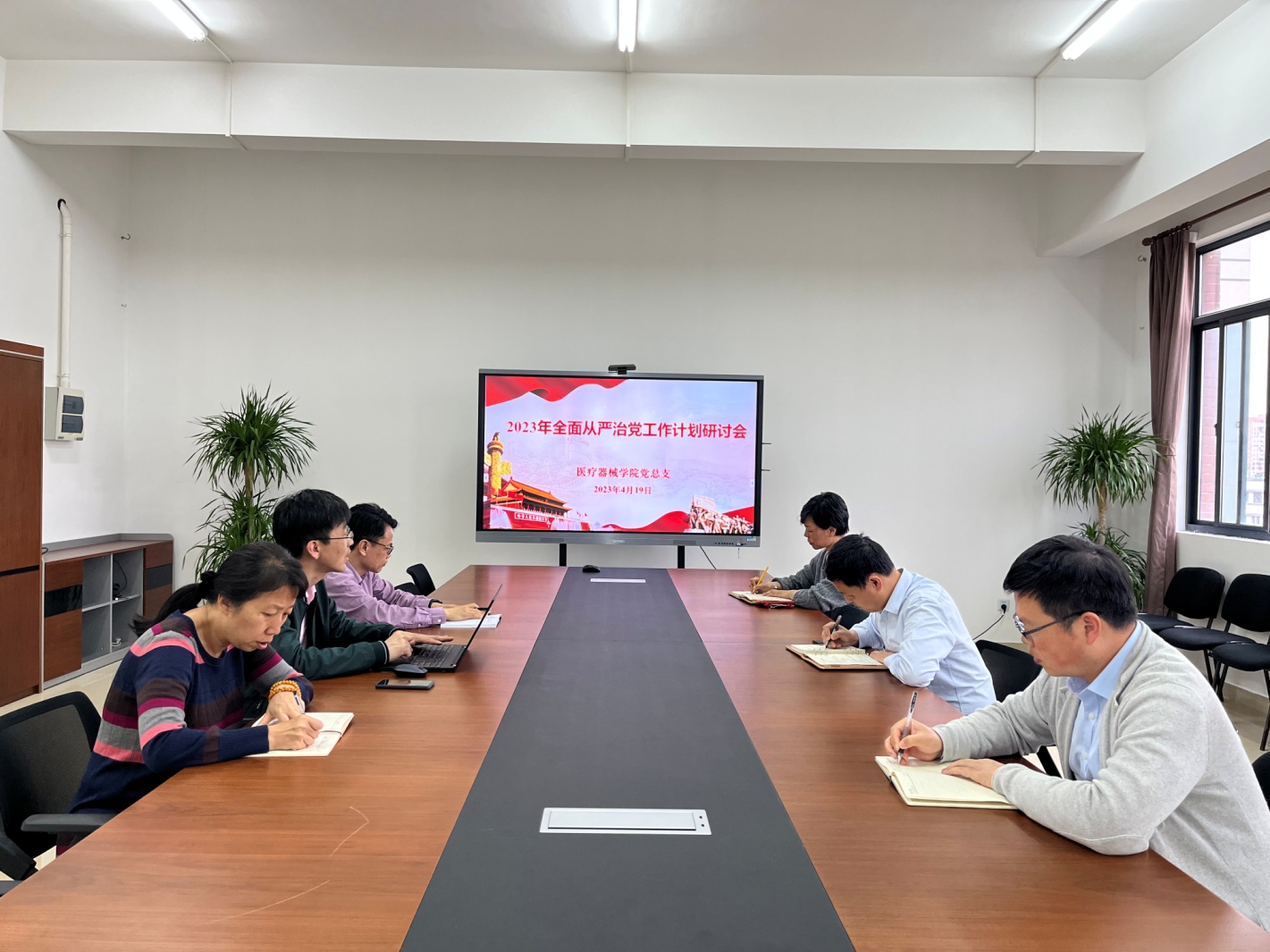 4月19日下午,医疗器械学院党总支在新南苑18号楼506室召开全面从严治党工作计划研讨会,学院党政班子成员、组织员、特约监察员等参加了此次会议,会议由学院党总支李晓欧书记主持。