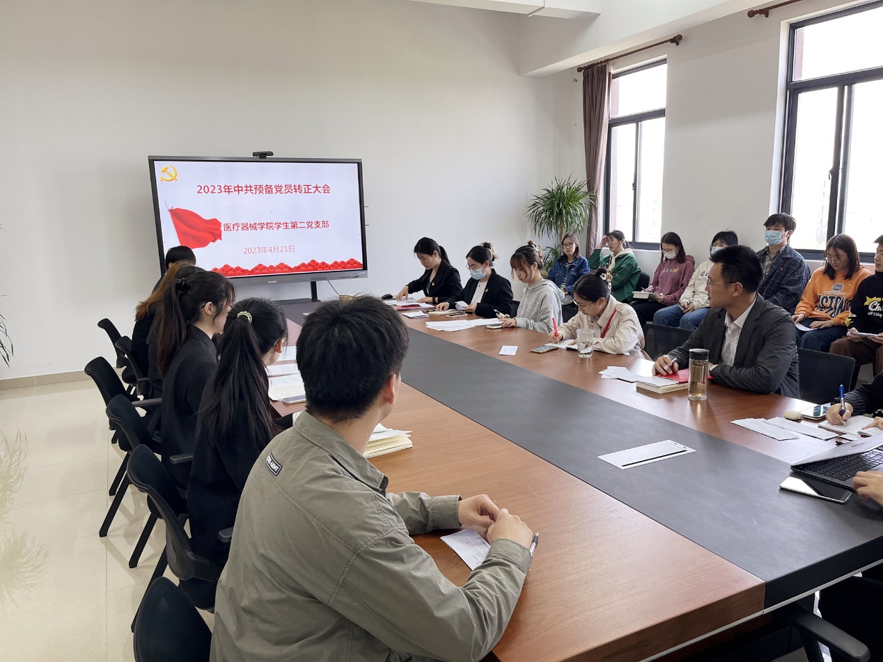 2023年4月21日下午13:30,医疗器械学院学生第二党支部在新南苑18号楼506室召开中共预备党员转正大会。学生第二党支部全体党员、5名拟转正同志及其入党介绍人出席会议,会议由学生第二党支部荀琳同志主持。