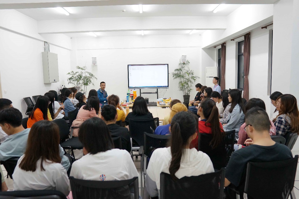 王老师向受助学生们依次介绍了学校2019年诚信感恩励志教育月活动:“我与祖国共成长”主题征文活动,以“中国梦、健康行、资助情”为主题的学生资助宣传大使评选活动。王老师鼓励同学们讲述自己在国家资助政策支持下的成长历程,踊跃参与主题征文活动。随后,王老师介绍了学生资助宣传大使评选活动,动员受奖助学生利用暑假回家乡、回母校开展资助政策宣讲活动。为了使同学们更加直观地了解资助宣传大使的工作内容,王老师向大家播放了2018年获得上海市十佳资助宣传大使称号的选手决赛视频,其中包含我校学生曲嘎的演讲与展示。通过学习十佳资助宣传大使的暑期工作经历,同学们不仅明确了作为一名资助宣传大使的职责,也对“不让一个学生因家庭经济困难而失去终身发展的机会” 有了更深地领悟。学院的资助育人活动作为学校2019年诚信感恩励志教育月活动的组成部分,王老师征求了同学们对下次活动的创想和建议。同时,李老师与在场的同学们分享了当前的学习与就业情势,并为同学们提供了前进的方向与建议。