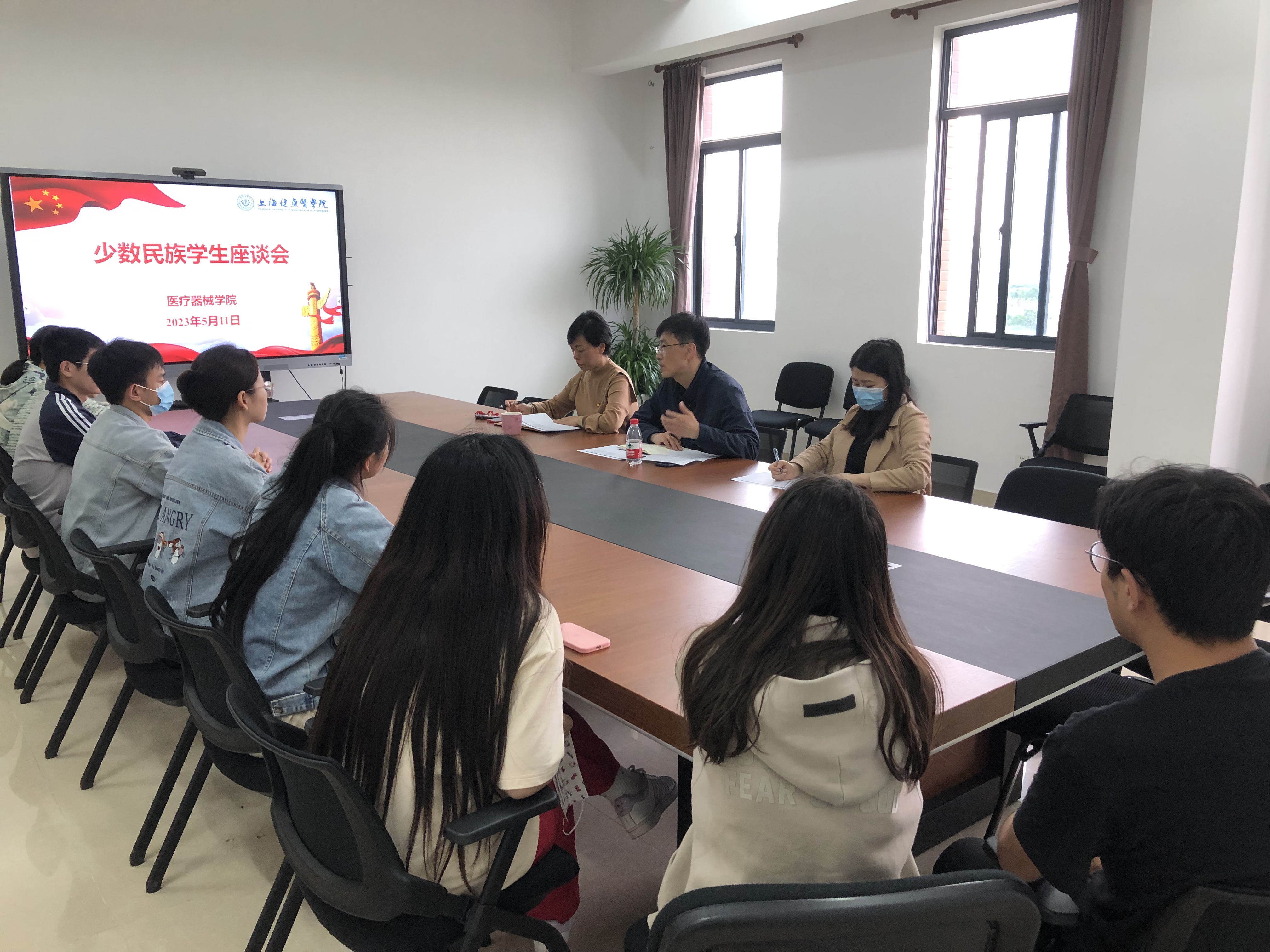为深入开展学习贯彻习近平新时代中国特色社会主义思想主题教育精神,铸牢中华民族共同体意识,牢固树立各民族唇齿相依、休戚与共的观念,切实加强与少数民族学生的交流互动,为少数民族学生成长成才保驾护航,5月11日下午,在新南苑18号楼506会议室医疗器械学院召开少数民族学生座谈会,学院党总支书记李晓欧、学生工作负责人杨美、辅导员杨晓哲及少数民族学生代表参会,会议由杨晓哲主持。