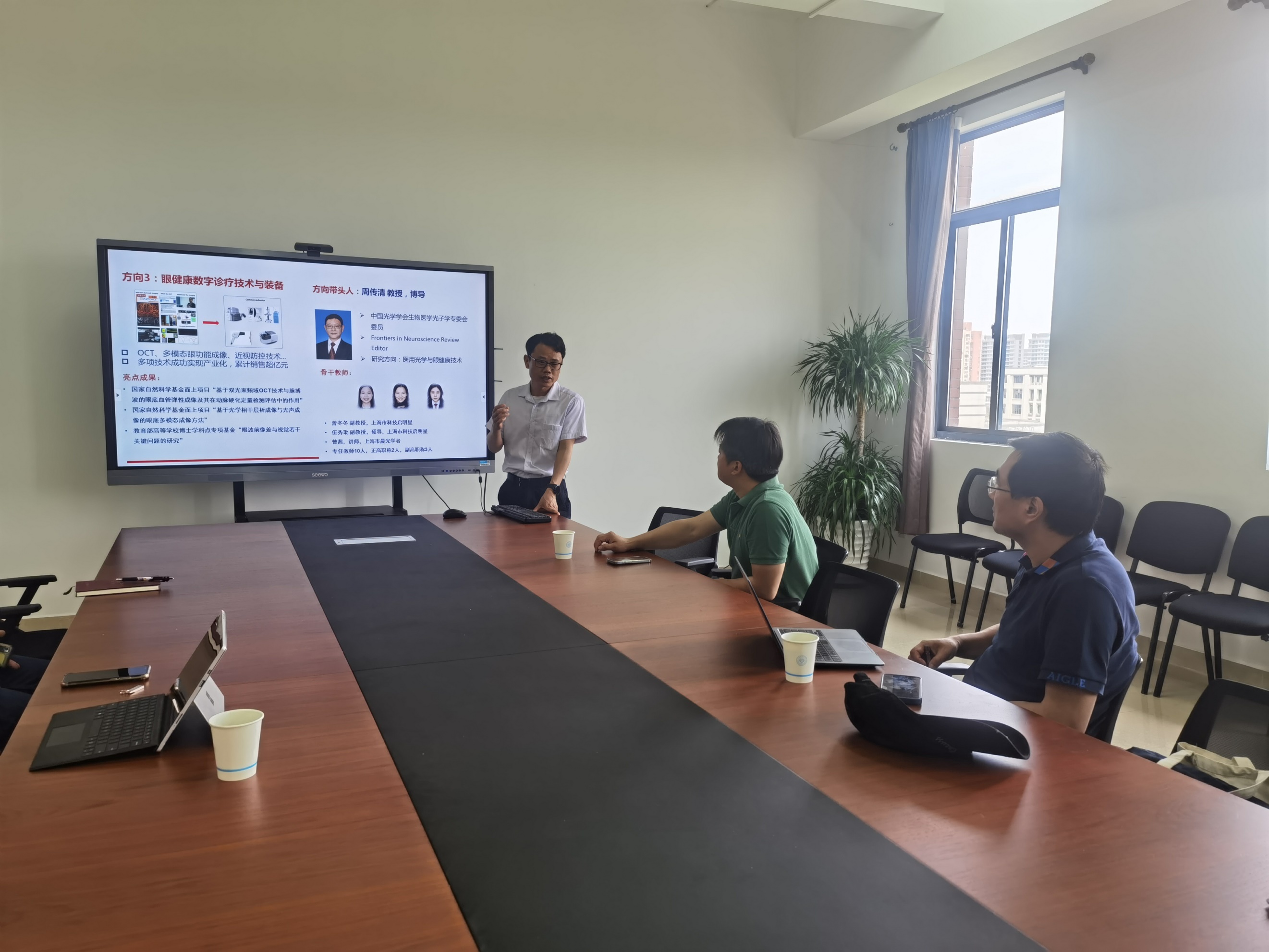 会议伊始,杨晖院长对上海交大专家的莅临表示热烈欢迎,并向他们介绍了医疗器械学院的概况、科研团队和相关技术的情况。随后,钱教授就上海交大电院的科研平台基本情况、研究方向、技术背景和产业趋势等内容进行了汇报。