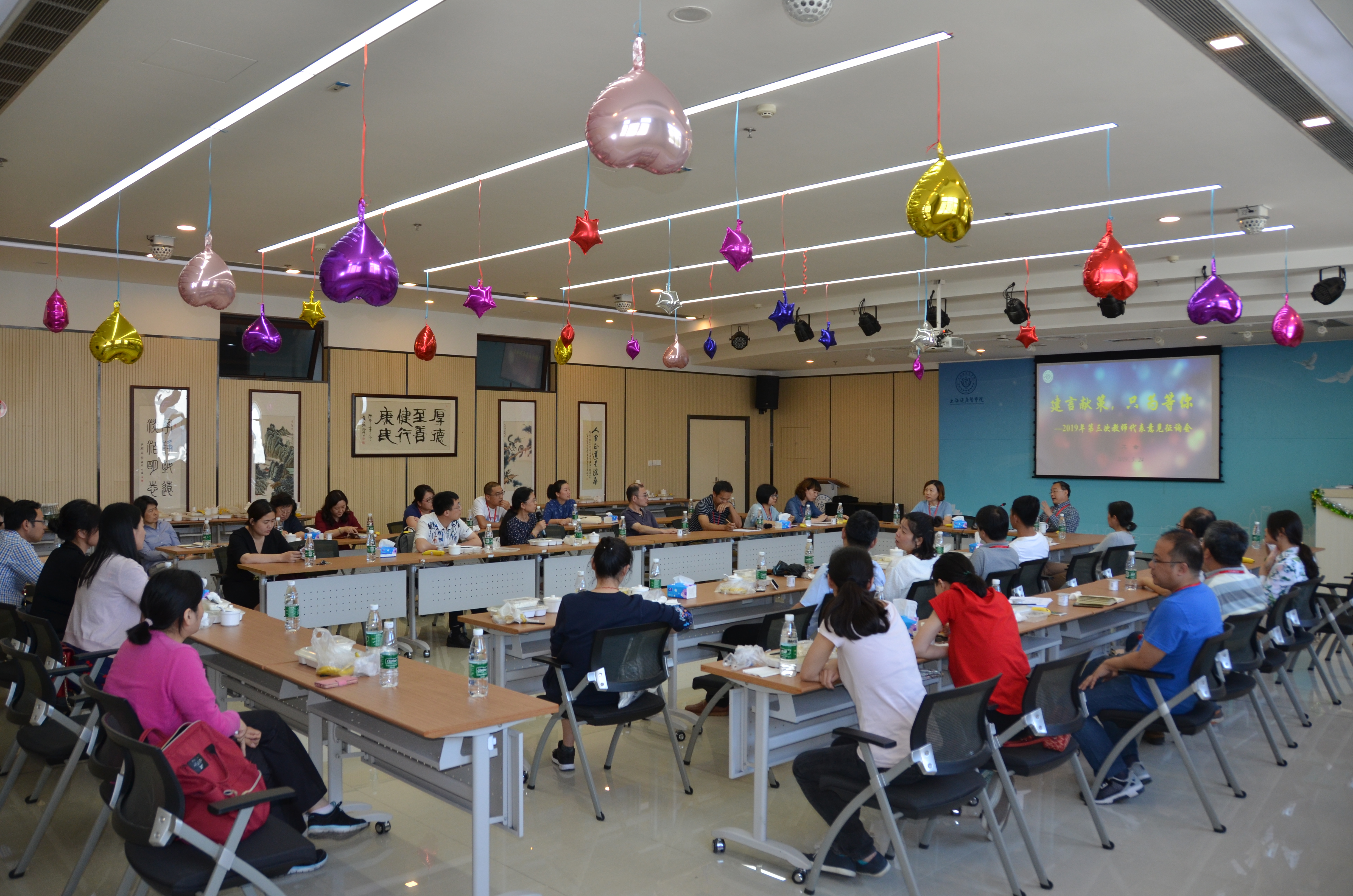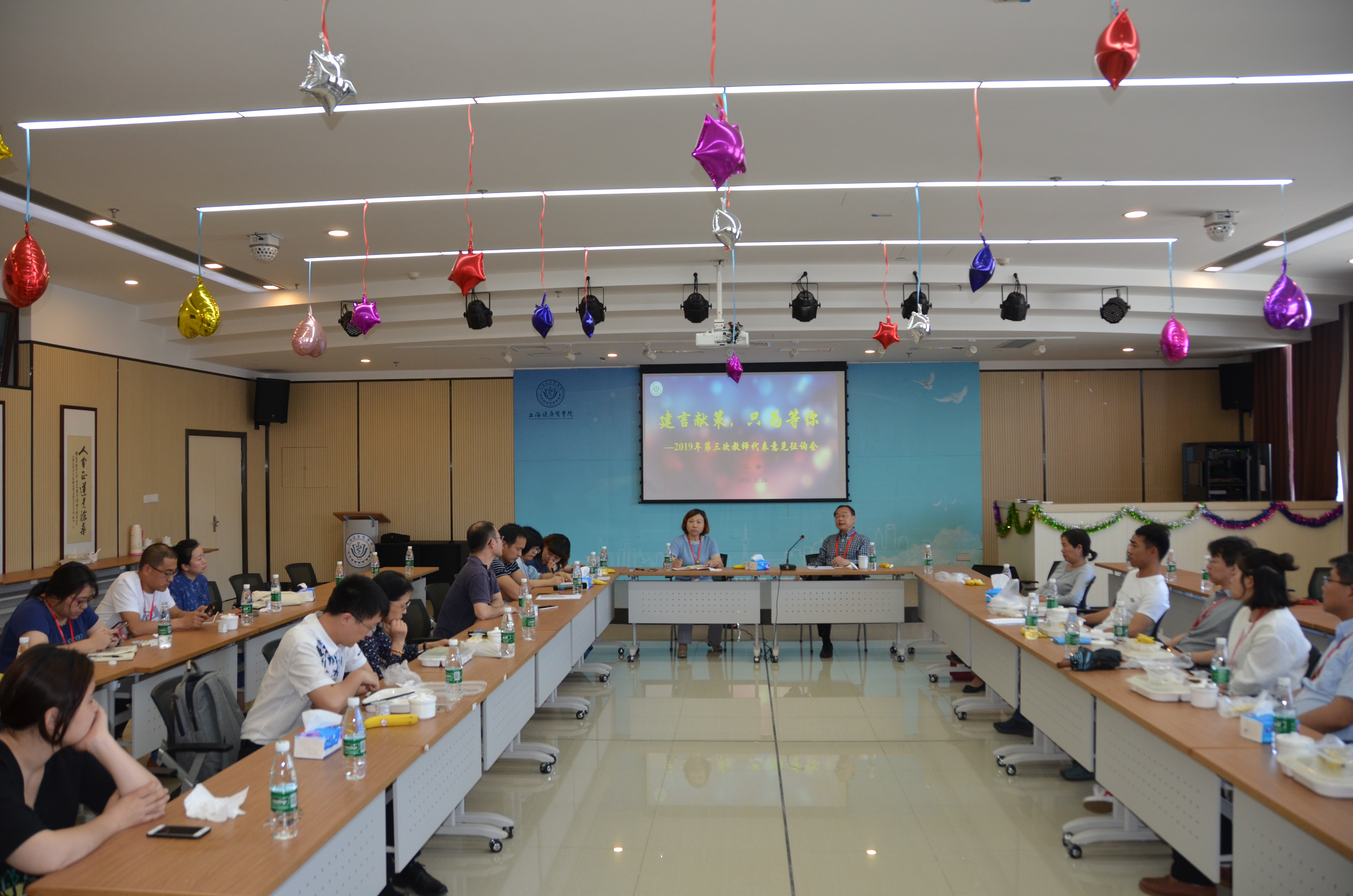 为了及时了解教职工近期关注的热点、难点或困惑,快速有效的传递学校职能部门的工作信息,加强教职工与校领导及职能部门的交流沟通,共同推进学校校务公开、民主管理工作,于2019年5月24日中午,在南苑7号楼403会议室召开2019年第三次教师代表意见征询会。校长黄钢,校办、教务处、人事处、后勤服务中心等部门负责人及我校各部门工会教师代表30多人出席会议。会议由工会常务副主席凌文惠主持。