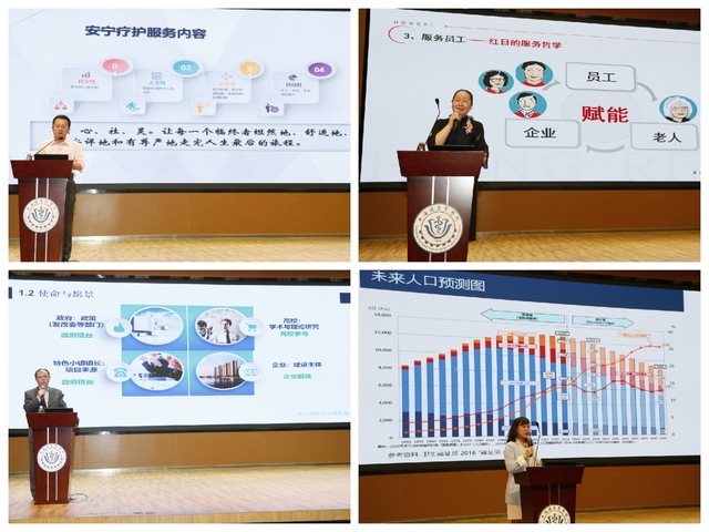 在下午的论坛环节,长三角地区的养老机构纷纷进行了讨论和交流。如上海红日家园企业管理有限公司董事长陈琦《养老机构护理员队伍建设的路径与对策》、中民居家养老产业有限公司运营总监骈董飞《养老机构面临的主要风险和规避措施》、临汾社区卫生服务中心副主任刘登《临终关怀——让生命有尊严的谢幕》、长三角特色小镇发展联盟秘书长孙立新《长三角特色小镇发展联盟介绍》等。