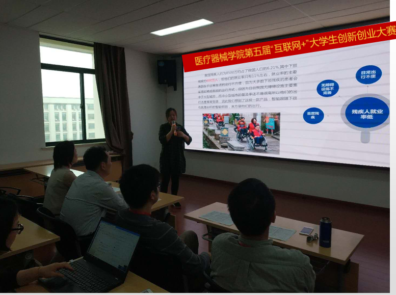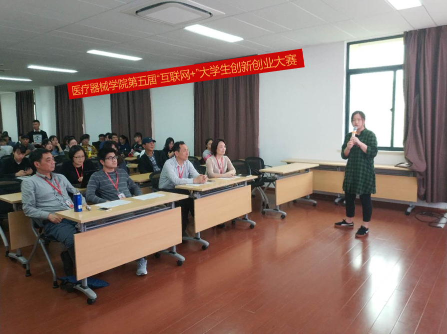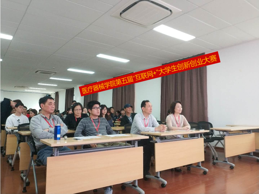 5月17日,第五届中国“互联网+”大学生创新创业大赛校内赛医疗器械学院内部选拔赛在新南苑18-410会议室举行,共有42个创新创业项目进行了路演展示和项目答辩。医疗器械学院王云光书记、胡兆燕院长、孙丽萍副院长、吕杰副书记、智慧医疗—“HHE”创新创业教育工作室负责人单纯玉教授、孟青云副教授、查雨彤博士担任本次答辩评审评委,学院办公室积极布置会场,保证了本次比赛的顺利进行。
