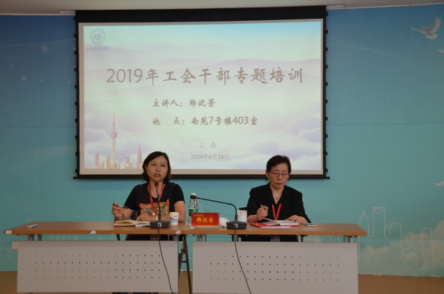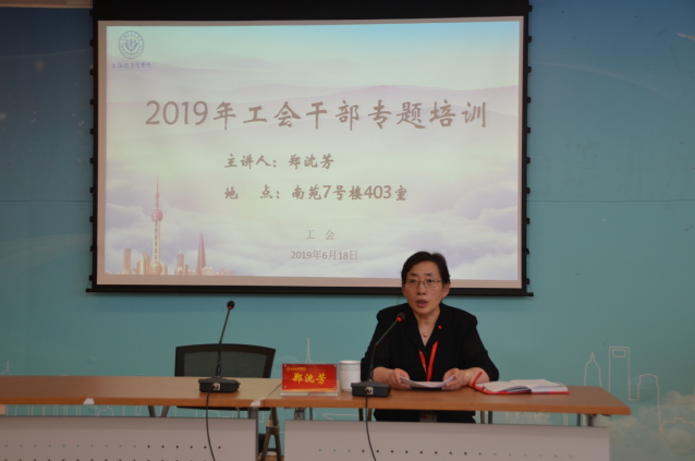 6月18日下午一点半,在南苑7号楼403会议室举行工会干部专题培训,由党委书记、工会主席郑沈芳主讲。校工会委员、妇工委委员、部门工会主席30余人参加,会议由工会常务副主席凌文惠主持。