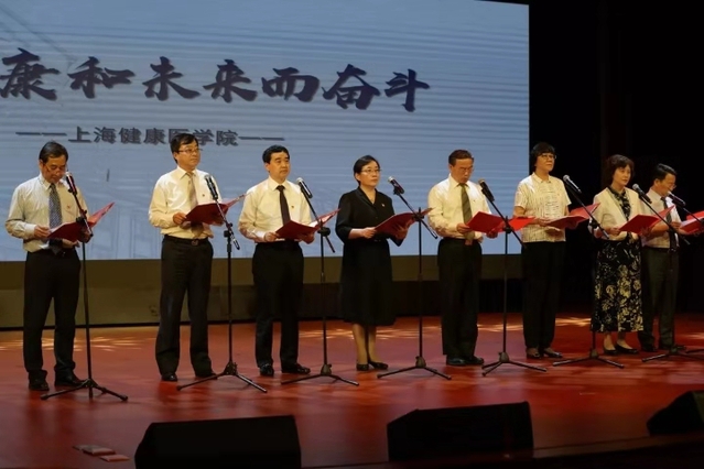 四是全体校领导庄严宣誓。在学校举行庆祝第35个教师节大会上,党委书记郑沈芳和校长黄钢带领全体校领导走上主席台,以《不忘初心,牢记使命,为健康和未来而努力奋斗》为题,声情并茂、铿锵有力的表演了诗朗诵。这是我校抓住机遇、改革发展的宣言书,是我校即将开展“不忘初心、牢记使命”主题教育的动员令,是健康人潜心培育新时代健康守门人的庄严承诺。引起了广大师生的共鸣,激发了广大师生砥砺前行的斗志!