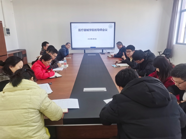 为了做好新时期学生思想政治教育工作,深入贯彻落实“三圈三全十育人”理念,充分发挥班导师的力量,进一步加强对学生的学业指导、生活辅导及生涯规划引导,3月3日中午,医疗器械学院在新南苑18号楼506会议室召开了新学期班导师工作会议,医疗器械学院20级、21级各班班导师及辅导员们出席了会议,会议由医疗器械学院副书记吕杰老师主持。