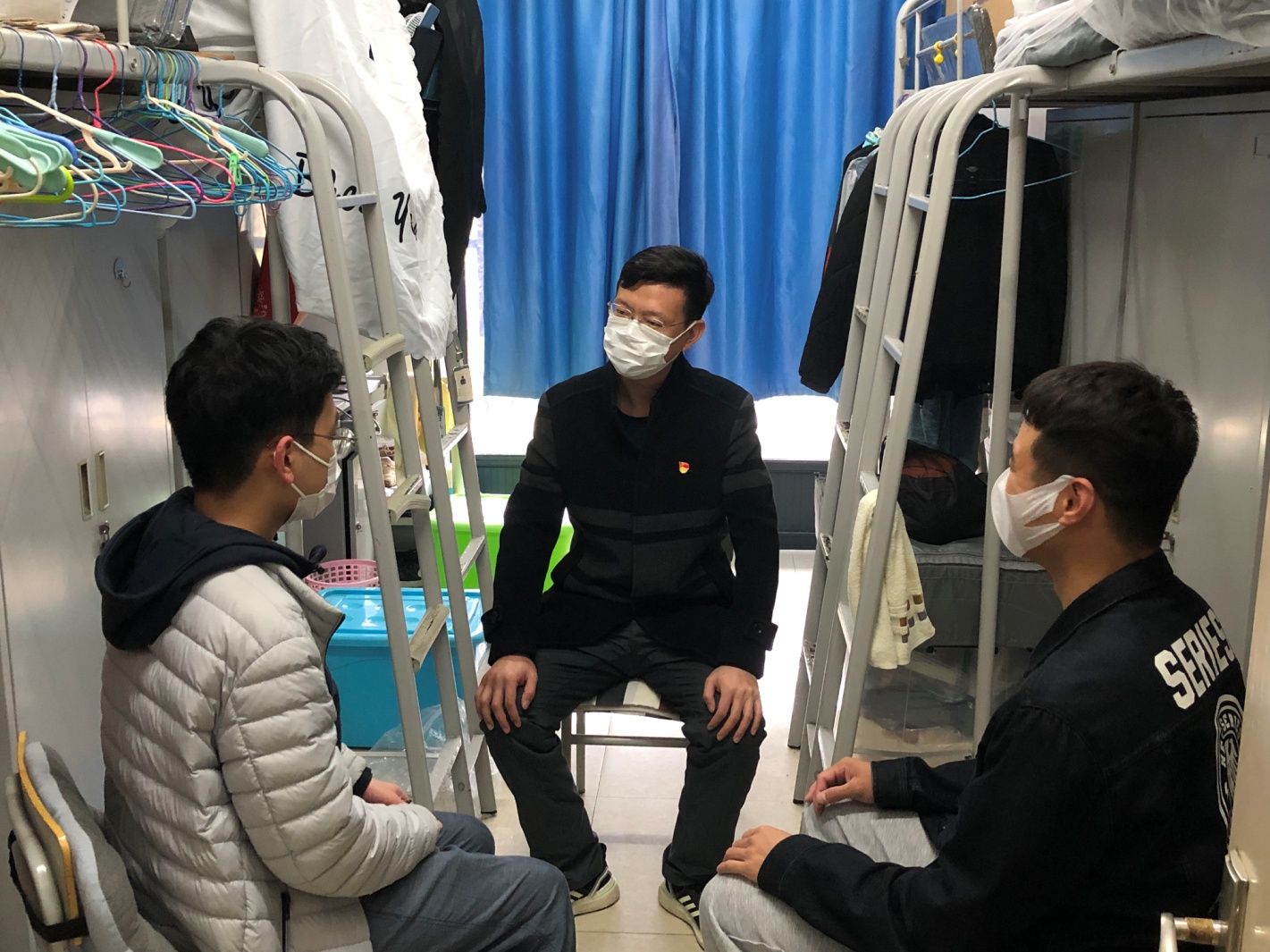 面对学院有多个专业和班级的学生在新南苑居住的实际情况,王老师迅速召集了学院的学生党员和骨干,确定学院各班级同学的临时负责人,把零散居住的不同班级汇聚一起,作为一个全新的班级管理。不仅进一步提升了信息的传递效率,快速响应了学生诉求,而且有效地消除了不实信息的传播,保障了学院学生在校园封控期间正常地学习和生活。