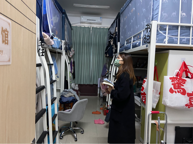 医疗器械学院学生第一党支部张夏静老师是学院年纪最小的新进辅导员。她以高度的责任感和对工作的热忱,积极投身疫情防控的战斗一线。听到疫情防控需要人手,张老师和新婚的爱人商量后,立即准备好洗漱包返回学校,随时听从组织调遣。
