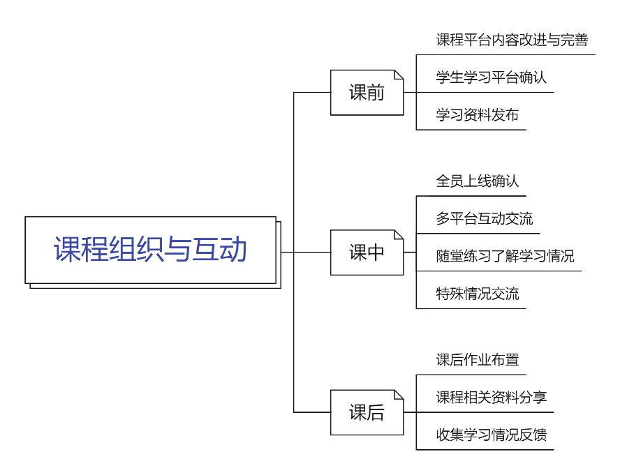 课程的线上教学组织如图1所示,主要分为课前、课中和课后三个阶段,师生互动也贯穿在其中,具体为:
