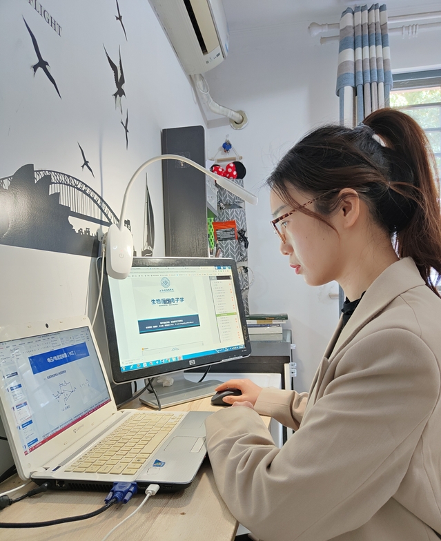 为了上好第一堂线上《生物医学电子学》课程,医疗器械学院涂华婷老师提前做了充分的准备工作,包括设备的齐全、网络的保障、操作的熟悉、上课内容的规划、任务点的设置、作业的布置、知识的扩展分享等。她认为最重要的是,从内心真正接纳网课这种授课方式,站在学生角度,充分调动学生积极性。