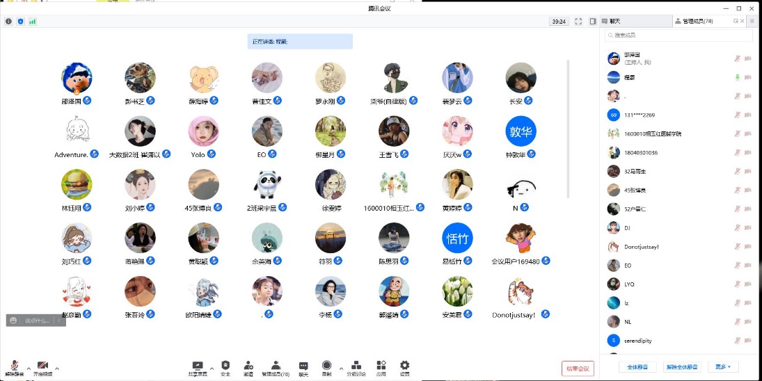 交流互动环节,安美君、张鹏、邵泽国等老师就同学提出的专业学习、考研与就业、课题参与等问题进行了困惑解疑和经验分享。会议历时2个多小时,参会同学纷纷留言表示这次讲座受益匪浅,为他们今后学习生活指明了方向,增强了他们做好科研或参与科研的信念,拓宽了他们的知识面,期待后续系列讲座能越办越好。