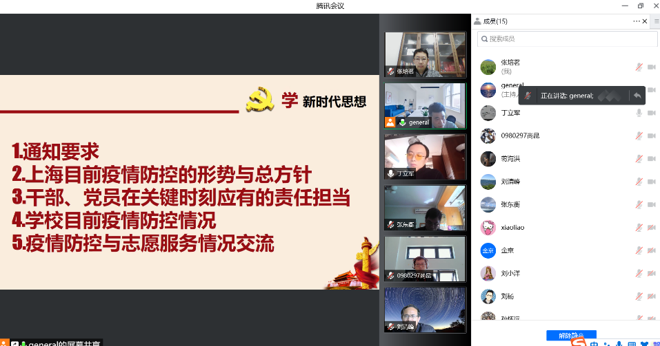 之后参与志愿服务的党员教师分享了防控经验和做法,各位党员交流了个人的防控心得并表达了决心,表示带头坚守岗位履职尽责,主动作为,积极投身防疫一线,积极配合疫情防控相关工作,最大限度减少疫情对教学科研工作的影响。(医疗器械学院)