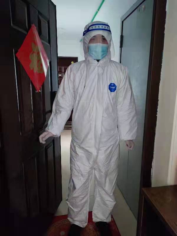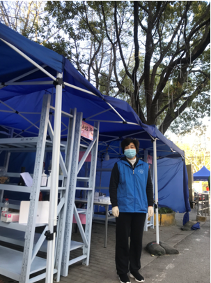 王选老师,在社区全员核酸检测期间,一早起床到集合处报到,穿戴好防护服,然后到所分管的单元楼值岗,维护好居民次序,避免扎堆聚集,并帮助社区工作人员挨家挨户敲门通知做检测,以免有人未知而遗漏;非检测期间,在分管的单元楼下巡视,对于要外出的居民进行劝阻,减少相互间的接触。对于有困难的居民,帮助他们解决困难,比如帮助老人到小区门口查看药品是否送到、将居民订的菜投送上门等。