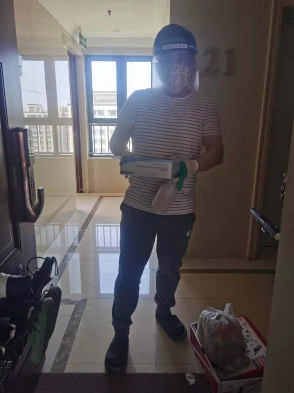 任和老师,主动报名社区志愿者,和社区其他志愿者分工协作,接收搬运小区居民团购用品和政府配发物资等,并逐一送到各楼栋口完成交接;帮助隔离楼栋定时领取快递和团购,完成消杀后运至楼下;配合居委会、业委会工作,完成楼栋居民的核酸/抗原检测工作安排管理、检测试剂材料分袋和分发、楼道电梯定期消毒等,尽自己所能,维护小区居民的正常生活,确保小区大家庭的安全稳定。