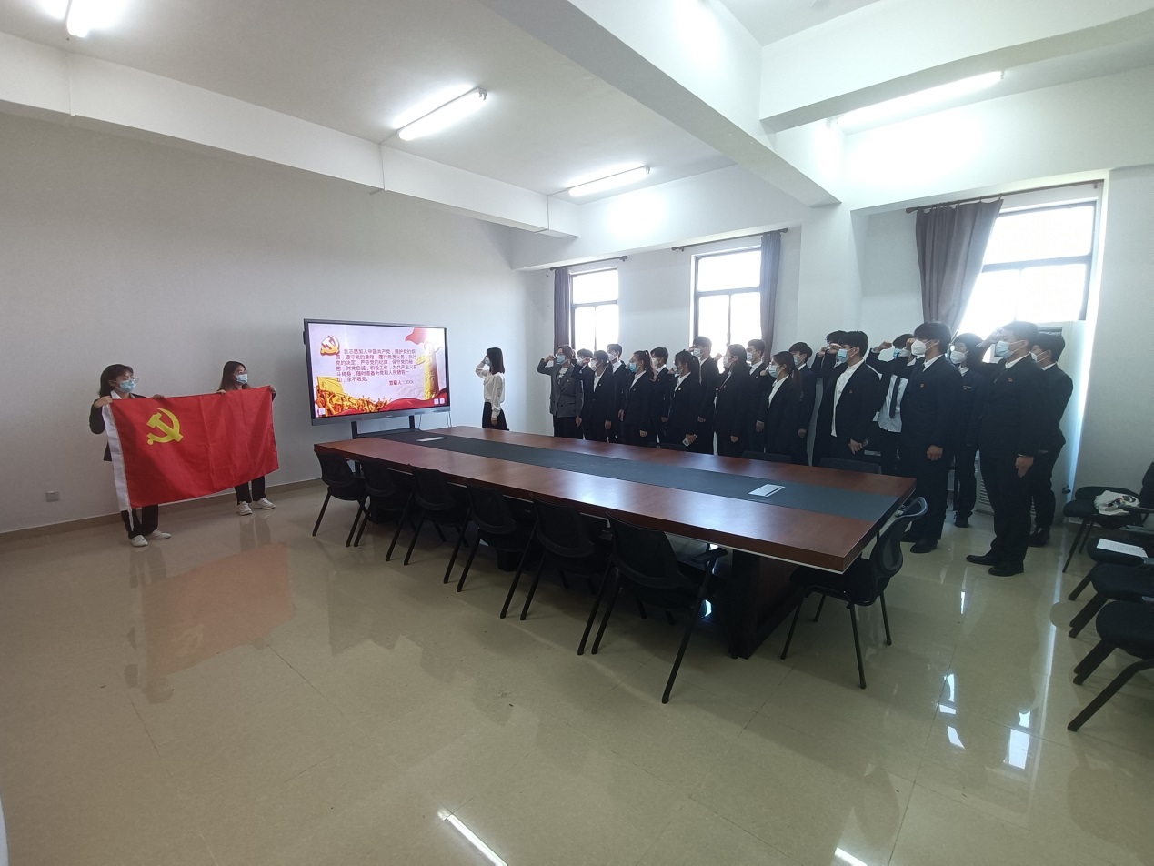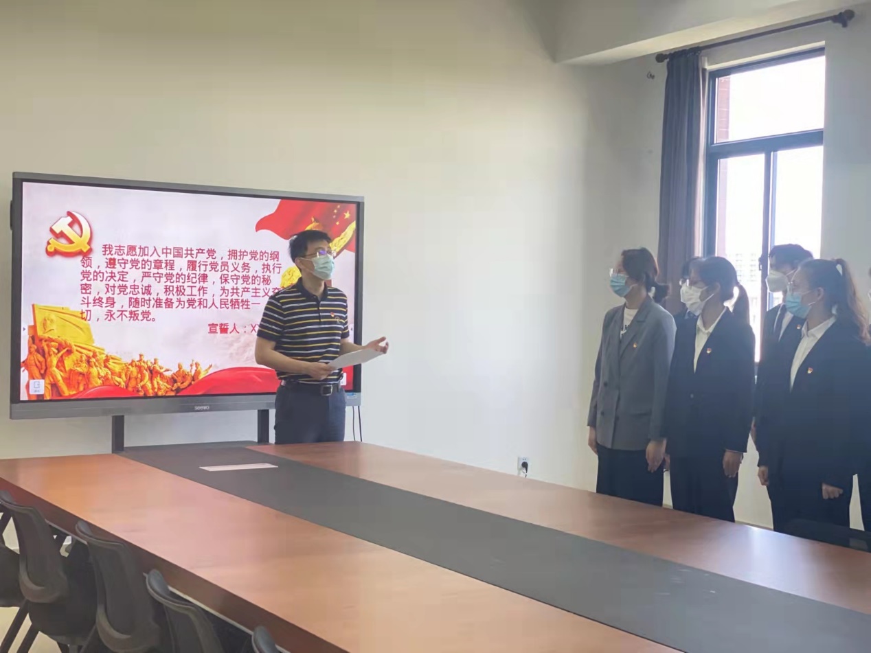 祝奇老师带领18位预备党员同志共同宣读入党誓词,预备党员们右手握拳,面向党旗,齐声念出入党誓词,这是他们怀揣初心站在新起点对党的庄严承诺,更是他们担起使命迎接新挑战的决心。