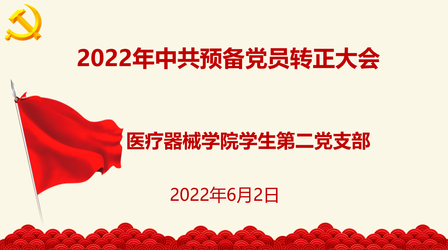2022年6月2日19:00,医疗器械学院学生第二党支部通过腾讯会议在线召开中共预备党员转正大会。学生第二党支部全体党员、11名拟转正同志及其入党介绍人出席会议,会议由学生第二党支部荀琳同志主持。