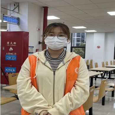 作为19级临床工程技术(本科)三班的入党积极分子,戴冰钰同学积极响应学校号召,担任此次南苑志愿者总负责人。在疫情防控阶段,保证南苑各组志愿者工作有序进行,每日负责巡查、对接以及汇报各组工作情况,并且保证每日应测核酸志愿者人数全部测完。在防疫工作期间,也遇到了各种各样的问题,但戴冰钰同学并未慌乱,作为区长,有条不紊地安排处理,有效解决。她说:“首先我觉得志愿者并不是一种光环,而是一种责任,要时刻走在前面,要发挥先锋模范的作用,相比那些在一线奋战的英雄们,这些事情真的很微不足道。”作为医疗器械学院的一名学生,她在疫情防控的关键时期,彰显了新时代大学生的良好精神风貌和责任担当,“我想证明疫情当前大学生志愿者们没有退缩,而是勇敢冲在前面,我相信,只有我们团结一心,不畏艰难,定会战胜这次疫情!”