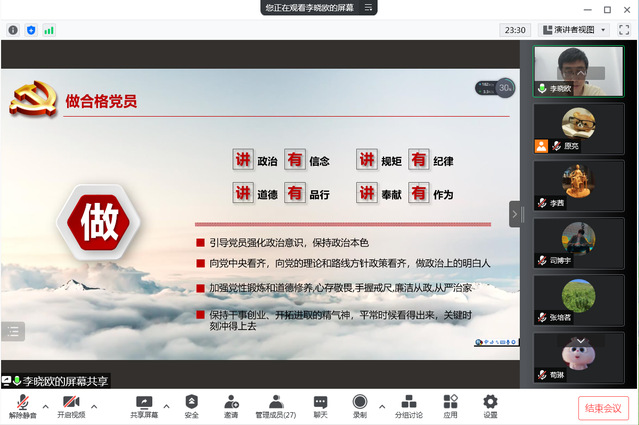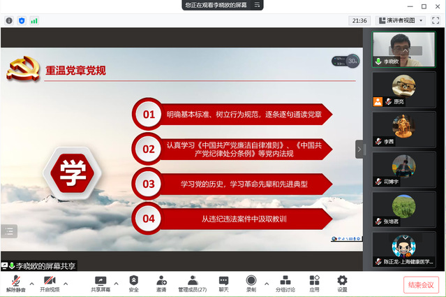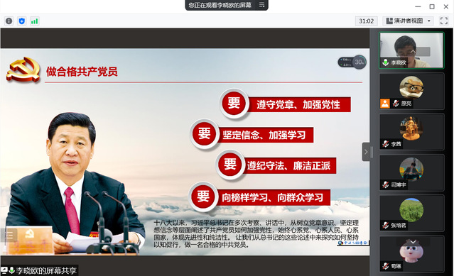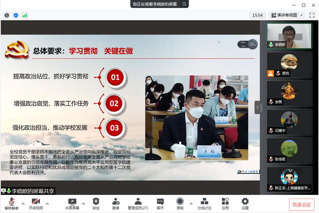 6月22日,医疗器械学院党总支通过线上组织召开中心组(扩大)学习会议,学院党总支委员、各党支部书记、团总支书记、教研室主任、科级干部、工会主席及各党支部委员等参加会议,会议由学院党总支李晓欧书记主持。