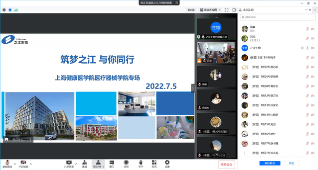 最后,上海西门子医疗器械有限公司、上药医疗器械(上海)有限公司、国药控股菱商医院管理服务(上海)有限公司、上海之江生物科技股份有限公司、上海蓝怡科技有限公司、纳米维景(上海)医疗科技有限公司、迈迪泰医疗技术服务(上海)有限公司、上海智宸实业集团、上海科华生物工程股份有限公司、卫宁健康科技集团股份有限公司等特邀企业一一进行企业宣讲,并分会场与毕业生进行交流。