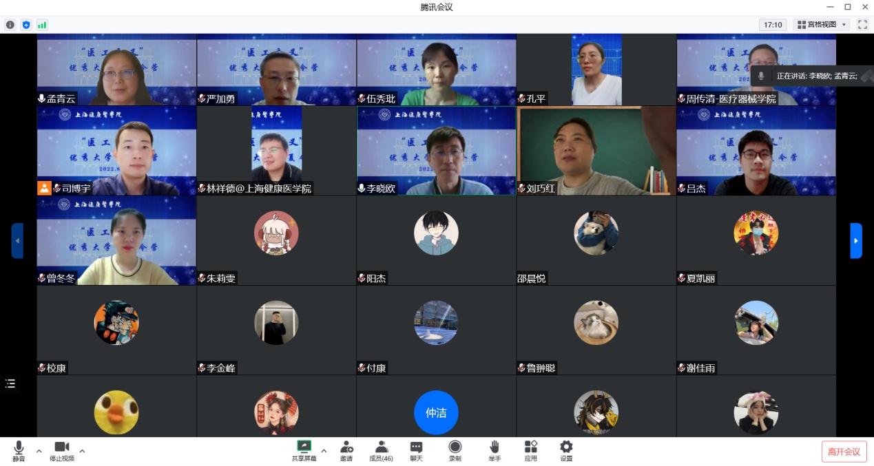 为促进校内外优秀大学生间的学术交流,吸引具有发展潜力的优秀本科生来校深造,2022年8月6日,上海健康医学院“医工结合”优秀大学生夏令营活动如期举行。由医疗器械学院主办的分会场活动于下午2点在腾讯会议平台在线举行,本次分会场的主题是“智能引领,器械先行”,15位研究生导师和40余名来自全国各地的本科生如约参加。医疗器械学院党总支书记、副院长李晓欧教授对参会学生表示欢迎,介绍了分会场的基本情况,会议由学院科研秘书司博宇主持。
