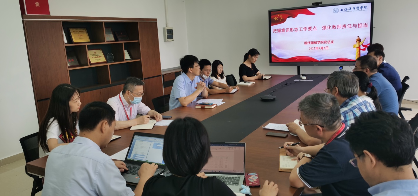 9月2日,医疗器械学院党总支在新南苑18号楼506室围绕“把握意识形态工作要点,强化教师责任与担当”主题召开意识形态工作专题会议,学院党支部书记、教研室主任、科级干部等参加会议,会议由学院党总支李晓欧书记主持。