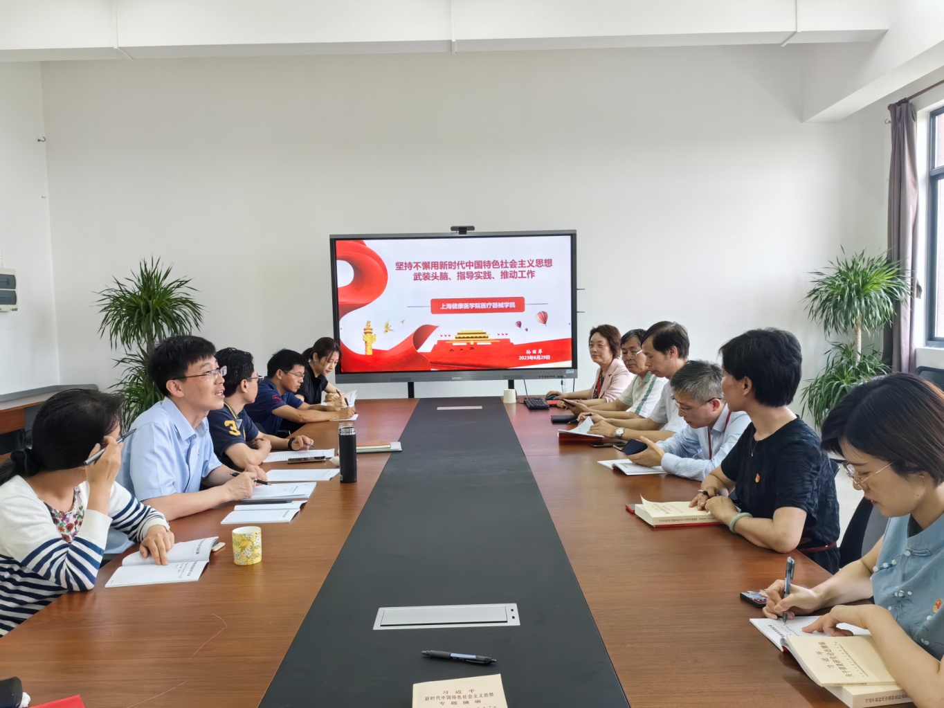 为推动主题教育走深走实, 6月29日中午,医疗器械学院在新南苑18号楼506室召开主题教育读书班学习会,孙丽萍副院长领学《习近平新时代中国特色社会主义思想专题摘编》第十八“坚持不懈用新时代中国特色社会主义思想武装头脑、指导实践、推动工作”,党总支书记李晓欧、院长杨晖、副院长张欣和学院中心组成员参加此次读书班,李晓欧主持学习会。