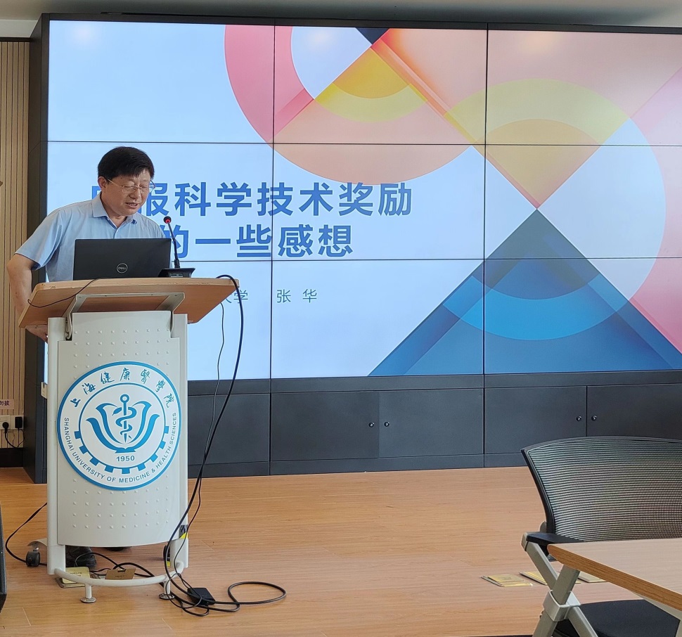 上海理工大学张华副校长高度肯定了医疗器械学院“医工融合”特色发展路线,并围绕“申报科学技术奖励的一些感想”主题,深入浅出传授科技奖励申报材料的“思路”“要点”与“技巧”,鼓励学院老师坚定信心、沉潜蓄势、厚积薄发,以科研奖项申报推动教学和科研工作。