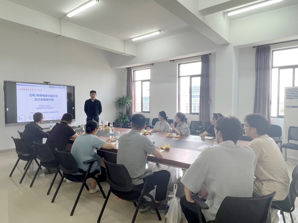为进一步促进医疗器械学院的智能学科建设和科研发展,提升教师的科研思路,拓展学术视野,聚焦智能医学检测、柔性电子器件和穿戴式医疗器械领域,推进基础研究和应用成果转化,助力我院学科和科研水平建设。7月14日,中国科学院北京纳米能源与系统研究所孙其君研究员(中科院百人计划、北京市特聘专家、北京市海外高层次人才、北京市科技新星)应邀来访医疗器械学院,孙研究员主要聚焦功能柔性电子器件和能源器件的学术研究和成果转化,特别是通过压电/摩擦电势调控柔性半导体器件和通过纳米发电机开发自供能可穿戴传感器件,在其基础上对人机交互、智能传感、人体健康监测和人工智能等领域做了大量拓展性应用研究,如多功能电子皮肤、纳米发电机、人工神经突触/类脑器件、自驱动柔性传感器、有机薄膜电子等领域。