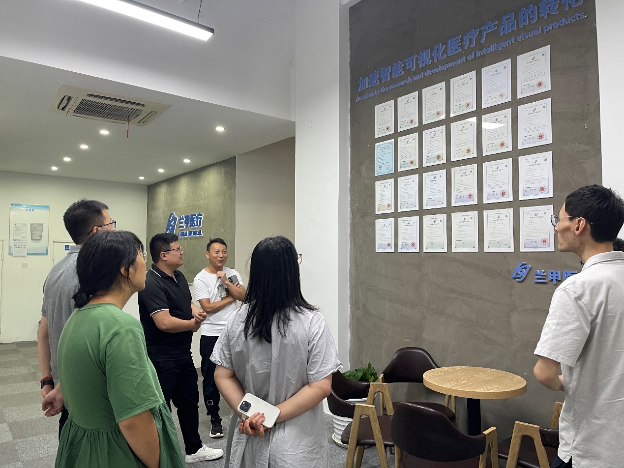 7月25日,上海健康医学院医疗器械学院智能医疗器械与主动健康协同创新团队成员林祥德、程静、赵晖、于仪、刘宇博一行访问了上海兰甲医疗科技有限公司进行项目研究合作交流。首先,公司研发部工程师为来访老师介绍了公司在成立两年来的产品研发重心以及与智能可视化气道管理产品相关的样机、专利和注册证等方面的技术积累,并围绕产品中的临床需求、瓶颈问题、市场情况、耗材元器件加工、产品技术难题、智能化解决方案等方面进行了热烈讨论。然后,公司负责人王总整体介绍了公司目前的主要经营业务以及未来公司的医疗产品布局,从两年前的从无到有,到目前具备较完善的产品研发主线、研发团队及实验场地,已初步具备自主研发品牌和知识产权储备。交流过程中强调,高值医用耗材具有大量的临床需求,附加值较高,并且过往由低质量医用耗材引发了一系列的临床风险问题,基于医疗器械学院目前已具备完善的实验室条件和生物医用材料方面的研究基础和经验,希望与医疗器械学院师生一道加强产教协同合作,结合公司目前在临床医疗产品方面的技术积累,预期在特定临床领域的高值医用耗材方向可实现一定的产品突破和布局,助力实现国产化替代。