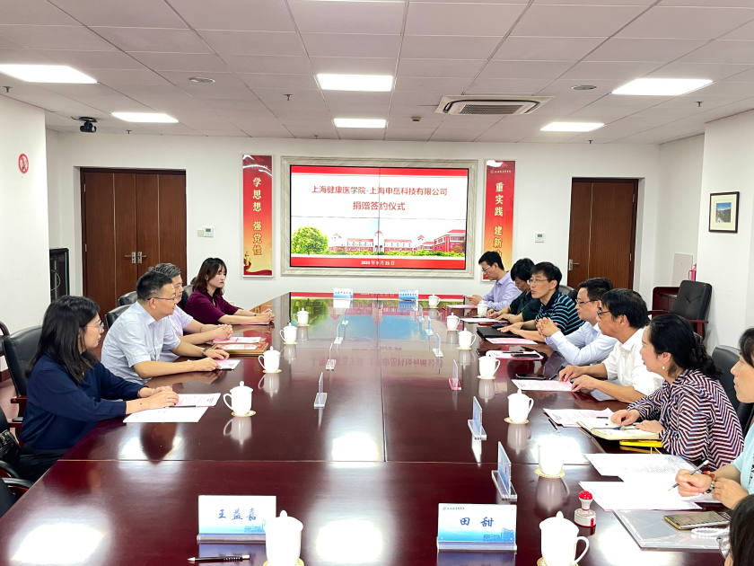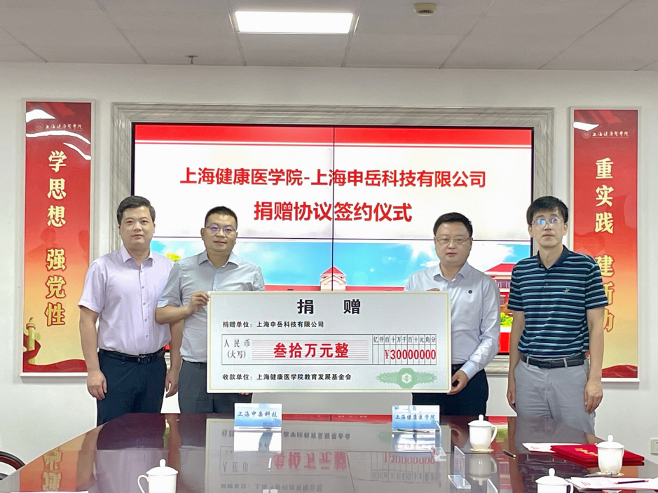 2023年9月21日,上海健康医学院教育发展基金会与上海申岳科技有限公司(以下简称“申岳科技”)捐赠仪式在我校隆重举行。学校党委宣传部部长、教育发展基金会理事长李兆伟,教育发展基金会副理事长胡兆燕,校友工作办公室副主任、校友会秘书长、基金会秘书长王红,医疗器械学院党总支书记李晓欧;申岳科技总经理周传兵,售后服务总监张杰,人力资源总监张丽,市场经理薛晓婷出席仪式。仪式由胡兆燕主持,医疗器械学院党总支副书记杨美,学生工作办公室主任王海峰,产学合作处对外合作科科长谭燕一同参加了捐赠仪式。