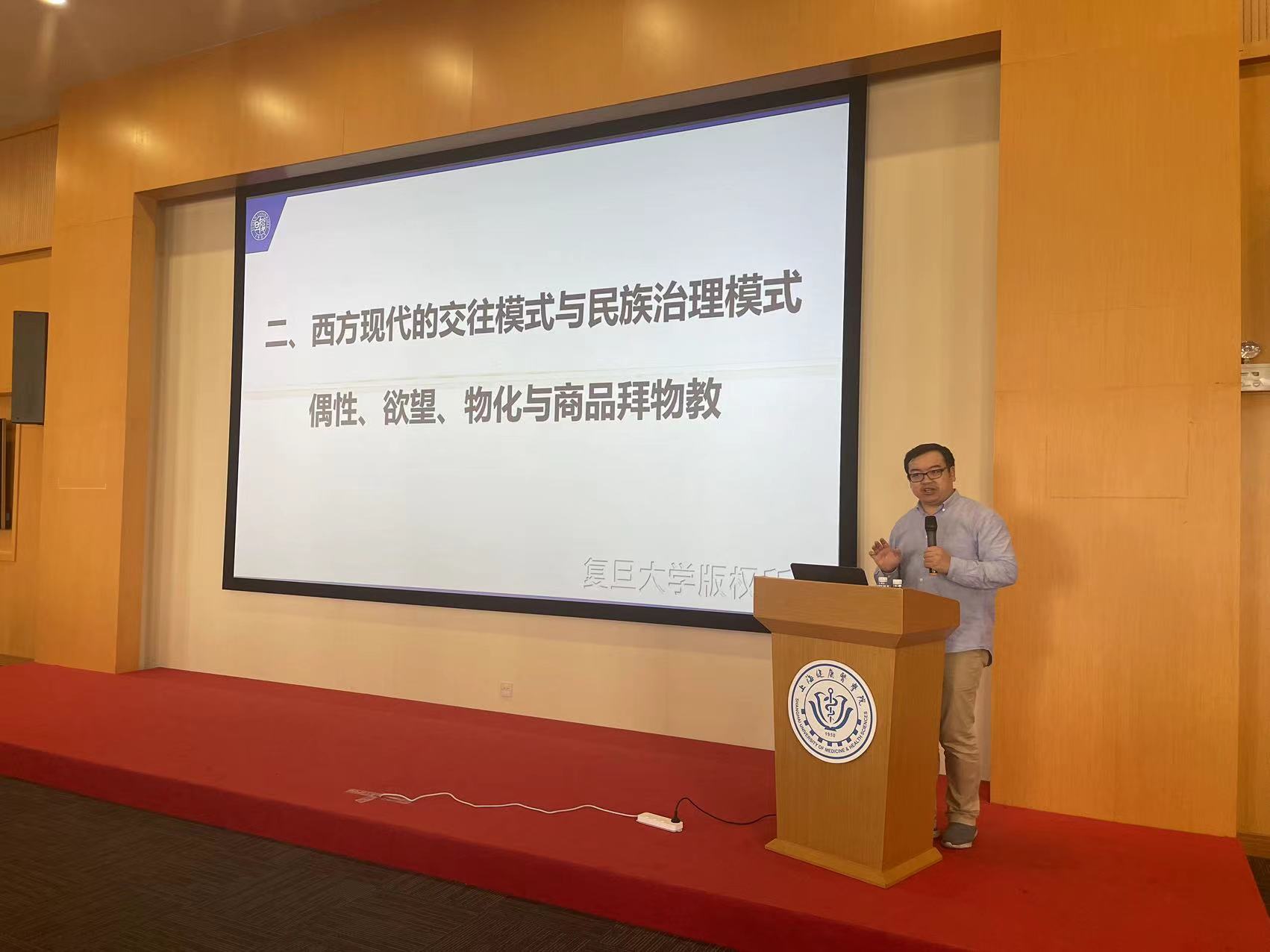 接着,鲁教授基于增进共同性和尊重差异性两个原则讲述中国民族治理的当代实践,强调加强和完善党对民族工作的领导,形成党委统一领导、政府依法管理、统战部门牵头协调、民族工作部门履职尽责、各部门通力合作、全社会共同参与的新时代党的民族工作格局,增强各族人民的国家意识、公民意识、法治意识以及对伟大祖国、中华民族、中华文化、中国共产党、中国特色社会主义的认同,保护和传承各民族在饮食服饰、风俗习惯、文化艺术、建筑风格等方面的文化。