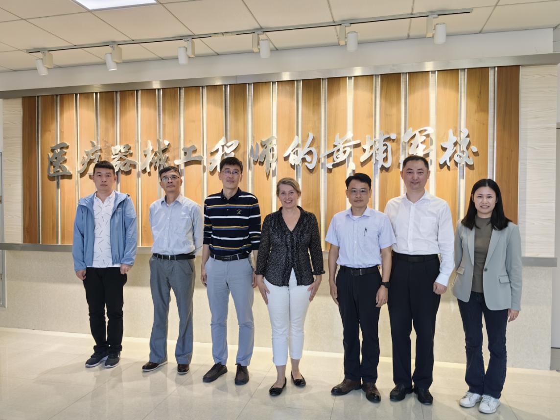 10月30日下午1点,索诺瓦(Sonova)亚太集团教育培训总监Bettina Turnbull女士、索诺瓦卓越听力中心培训总监杨欣怡女士(在线)、顾问陈红女士及长三角医疗器械产业发展促进会副会长袁炜先生来学院洽谈人才合作培养工作。索诺瓦集团本部位于瑞士,旗下助听器产品市场份额常年占据全球第一。此次合作是由长三角医疗器械产业发展促进会牵头组织,杨晖院长、李晓欧书记为此项合作洽谈专门组成专业团队,共同接待到访来宾。