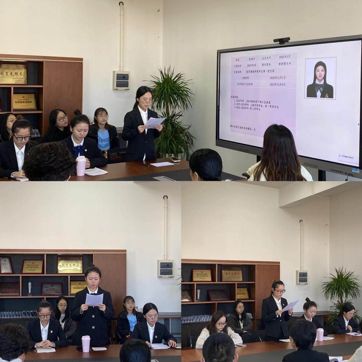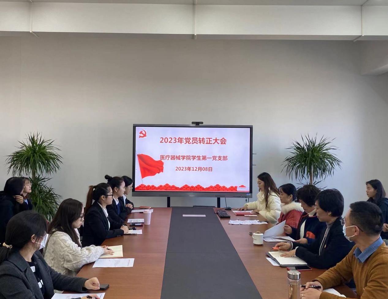2023年12月8日下午,医疗器械学院学生第一党支部在南苑18号楼506会议室召开中共预备党员转正大会。学生第一党支部全体党员同志、拟转正的同志及其入党介绍人到场参加。会议由支部书记刘一丹主持,学校特邀党建组织员庄肖冬老师到会监督指导。