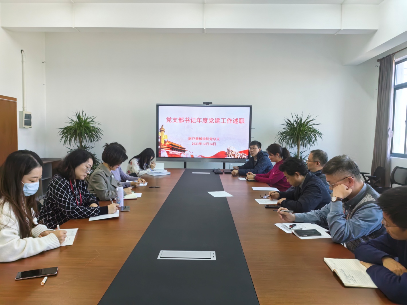12月14日下午,医疗器械学院党总支在南苑18号楼506会议室召开2023年度党支部书记党建工作述职评议会,会议由学院党总支李晓欧书记主持,学院党总支委员、各党支部书记参加了此次述职评议会。