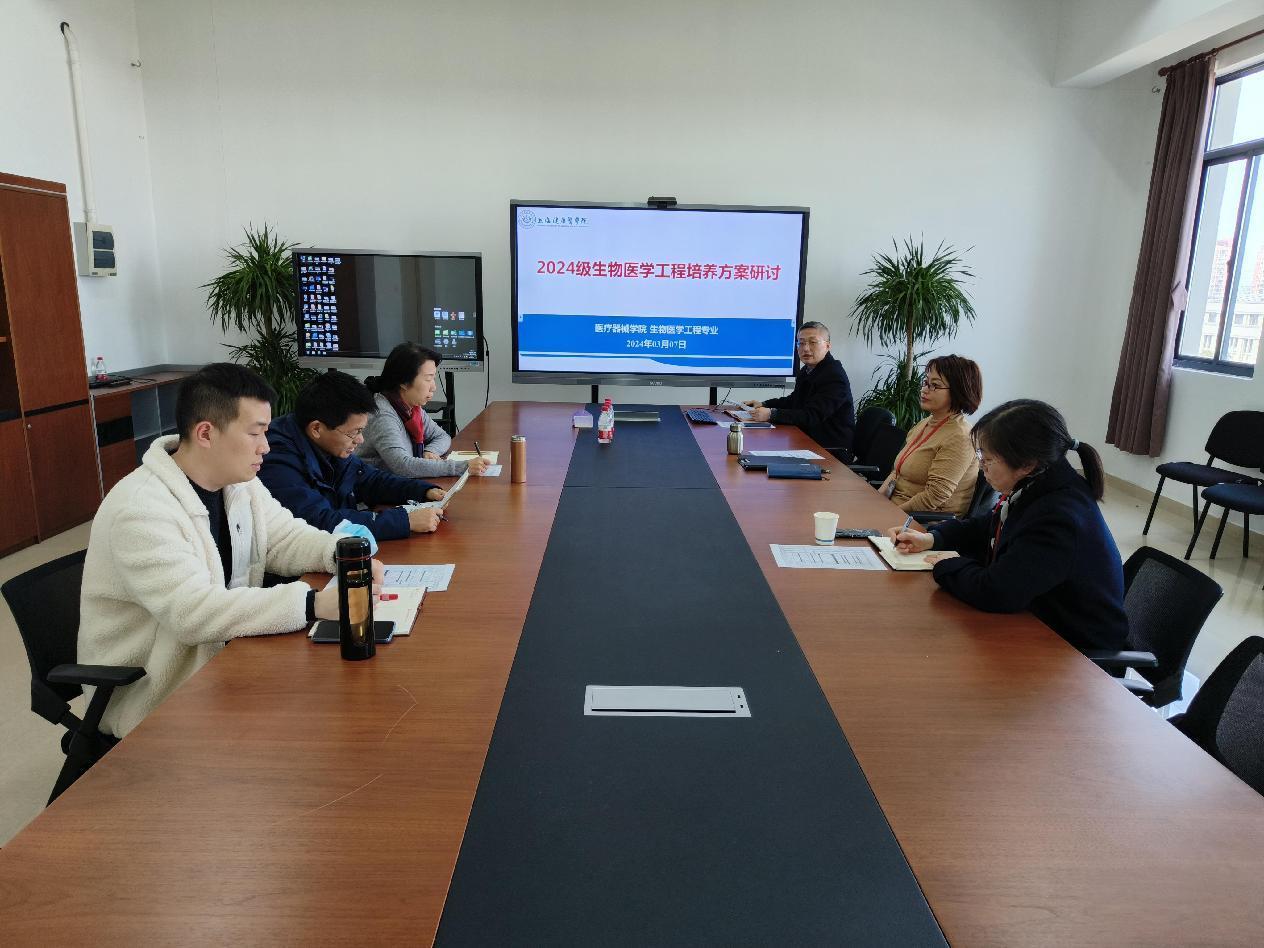 为进一步提升人才培养质量,迎接本科专业认证工作,2024年3月7日下午1:30,在18号楼506会议室,医疗器械学院召开生物医学工程专业2024级人才培养方案讨论会,会议由生物医学工程专业主任严加勇主持。教务处副处长蒋淑敏、医疗器械学院副院长张欣以及各教研室主任出席。