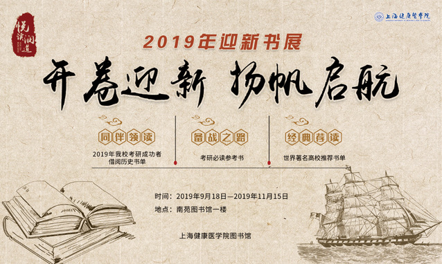 金秋送爽,丹桂飘香,上海健康医学院迎来了来自五湖四海的崭新面孔。为了充实大学新生的校园生活,丰富大家的精神世界,图书馆特举办2019年迎新书展。