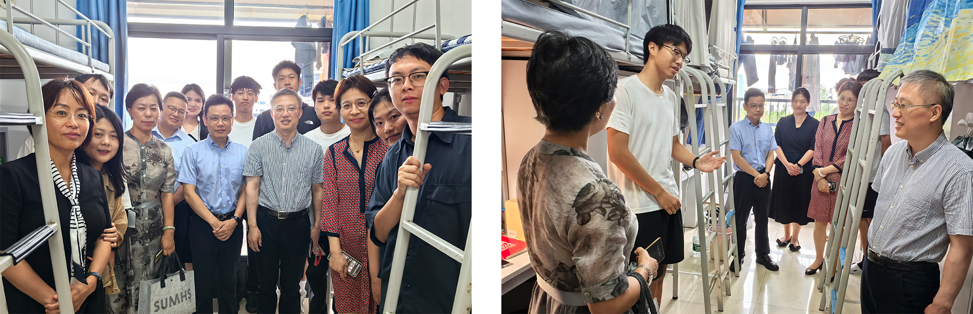 9月18日下午,全体院领导深入同学寝室,走访慰问2025级新生,与来自全国各地的新生亲切交谈,详细了解他们的适应状况,叮嘱室友之间要互帮互助,提醒绷紧安全这根弦,共同营造温馨和谐的寝室氛围。